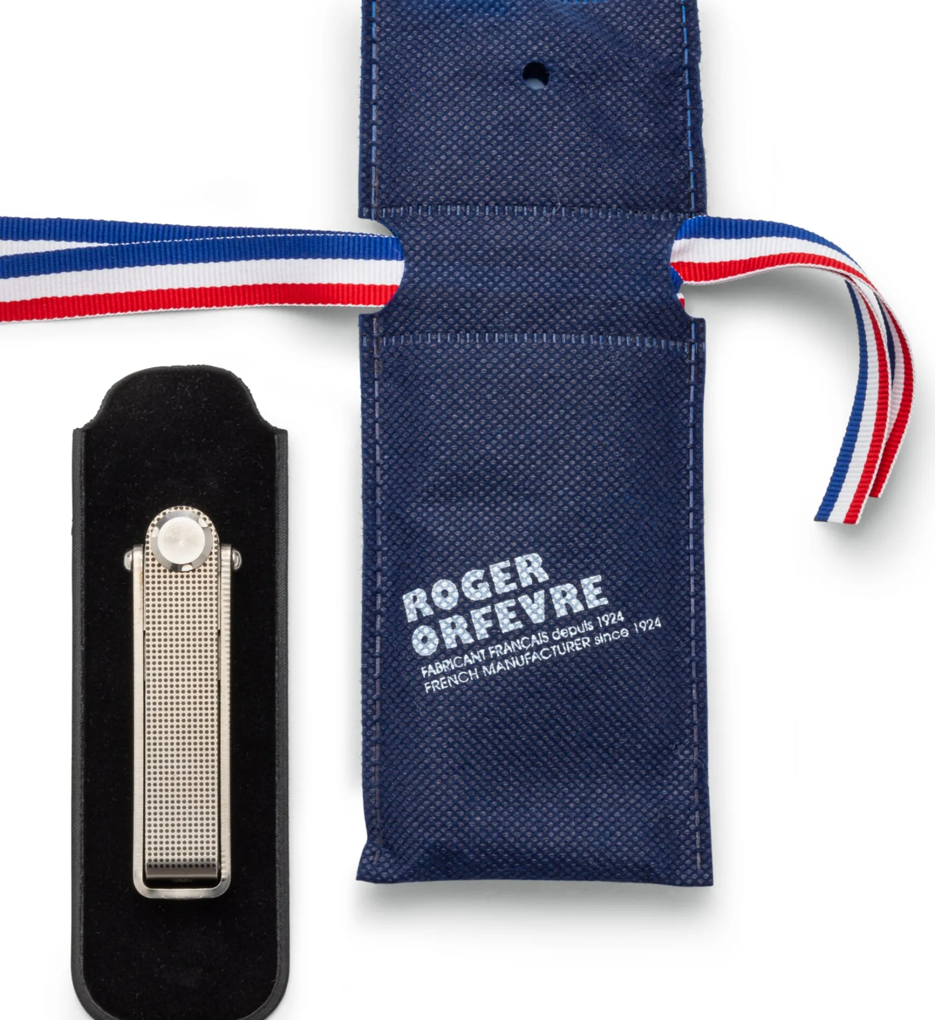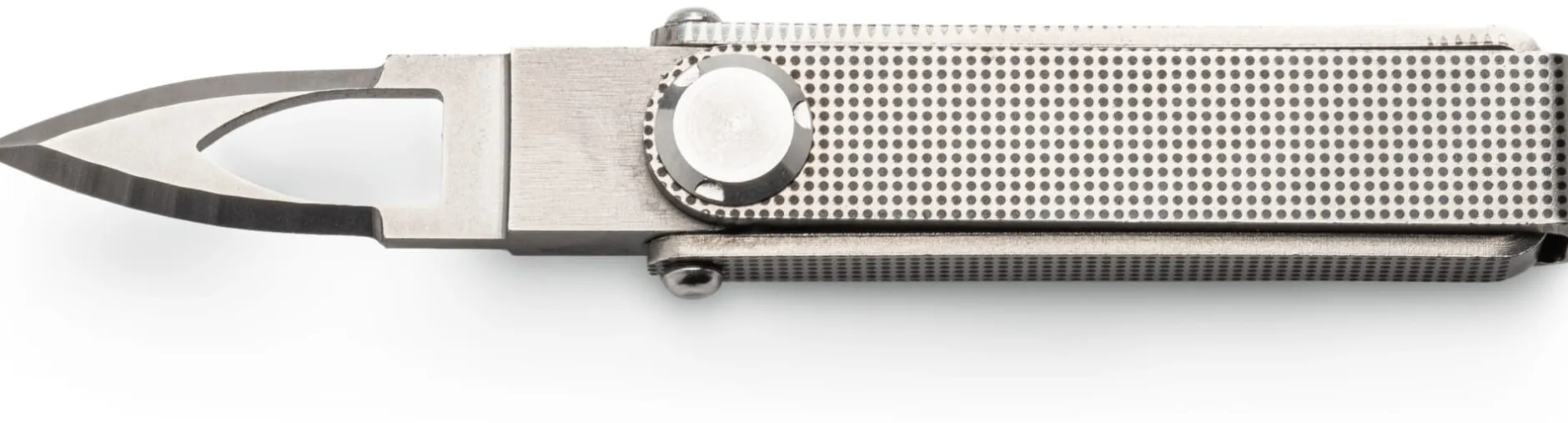 Ganz aus Edelstahl. Hergestellt in Frankreich. Breite 2 cm. Klingenlänge 3,5 cm, Heftlänge 8,5 cm. Gesamtlänge (ausgeklappt) 14,5 cm. Gewicht 90 g.