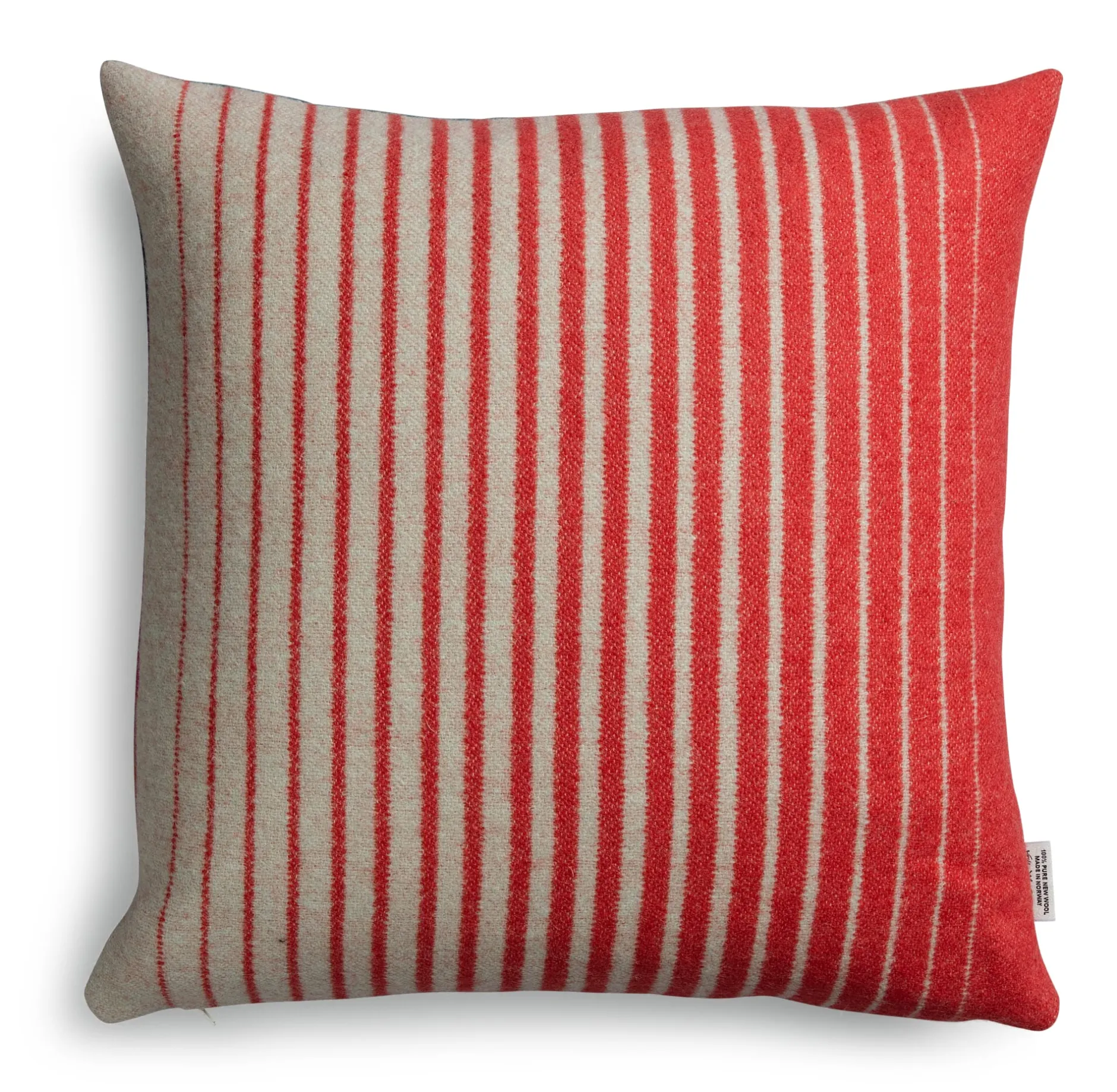 Kissenhülle aus norwegischer Wollweberei in zeitgenössischer grafischer Gestaltung. Erhältlich in drei verschiedenen, leuchtenden Farbstellungen. Ohne Füllung.
