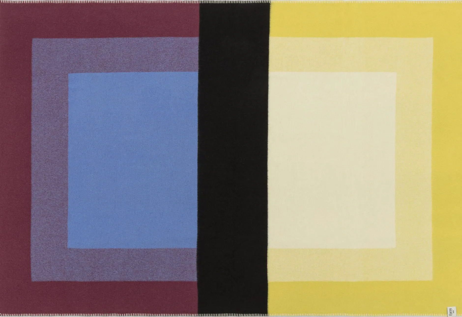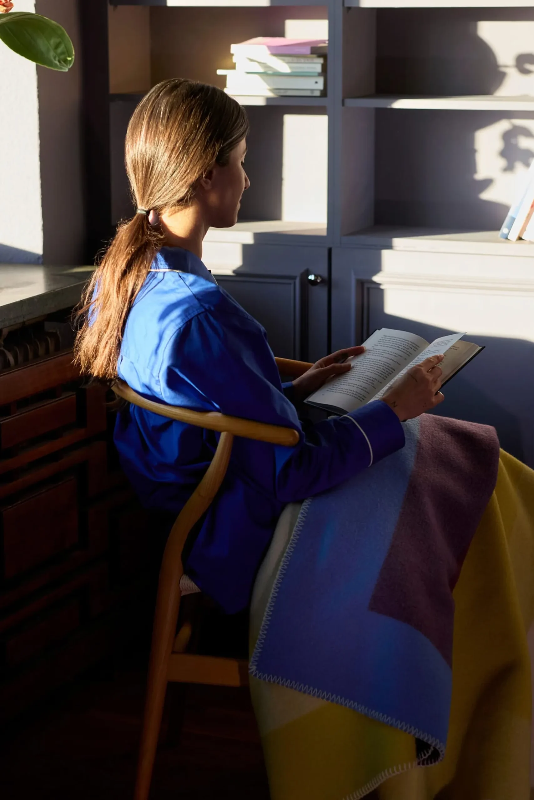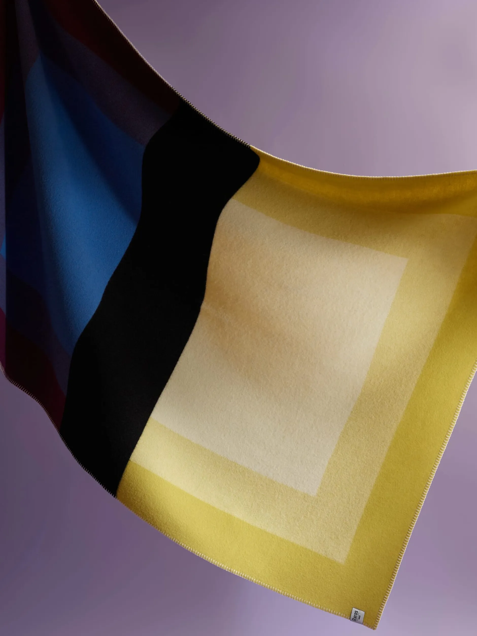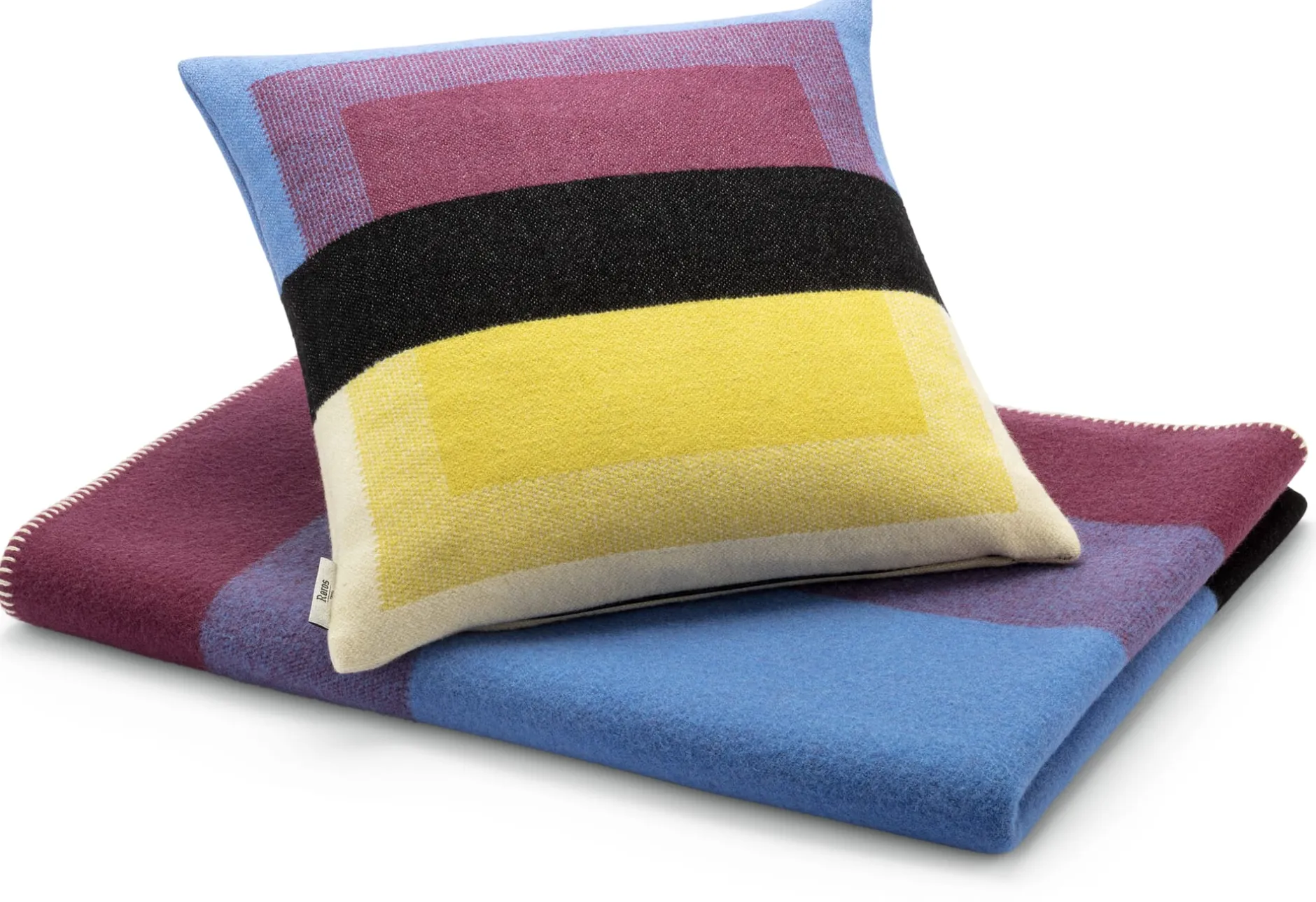 „Stilsicher, ausdrucksstark, harmonisch in Farbe und Muster“ könnte die Kurzfassung für die Dessins der Røros-Tweed-Wolldecken lauten. Dabei zeichnen ganz unterschiedliche Designer*innen verantwortlich. Und so verschieden ihre Arbeiten auch sind, haben doch alle Lust am Spiel mit Farben und ein gleichgeartetes, sicheres Gespür für grafische Kompositionen. Kristin Five Melvær ist bereits mit einigen Dessins bei Røros Tweed vertreten, auch der Entwurf für die Bento-Serie stammt aus ihrer Feder. Leicht zu erkennen an den klaren Linien, den ausdrucksvollen Farbkombinationen und außergewöhnlichen Details, die gleichmäßige Strukturen aufbrechen und Kontrapunkte setzen: Hier ist es der markante schwarze Balken, der die Farbrahmen und -flächen auf der Hälfte unterteilt. In Kombination mit dem Namen lässt uns das Dessin sogleich an die japanische Lunchbox denken, für die solch klare Unterteilungen (neben dem optisch ansprechenden Arrangement der Speisen darin) typisch ist. Das Muster der Bento-Lammwolldecke erscheint aufgrund der Webung als Doubleface auf der anderen Seite gegengleich. So lässt sich die Decke als variabler Farbakzent einsetzen.