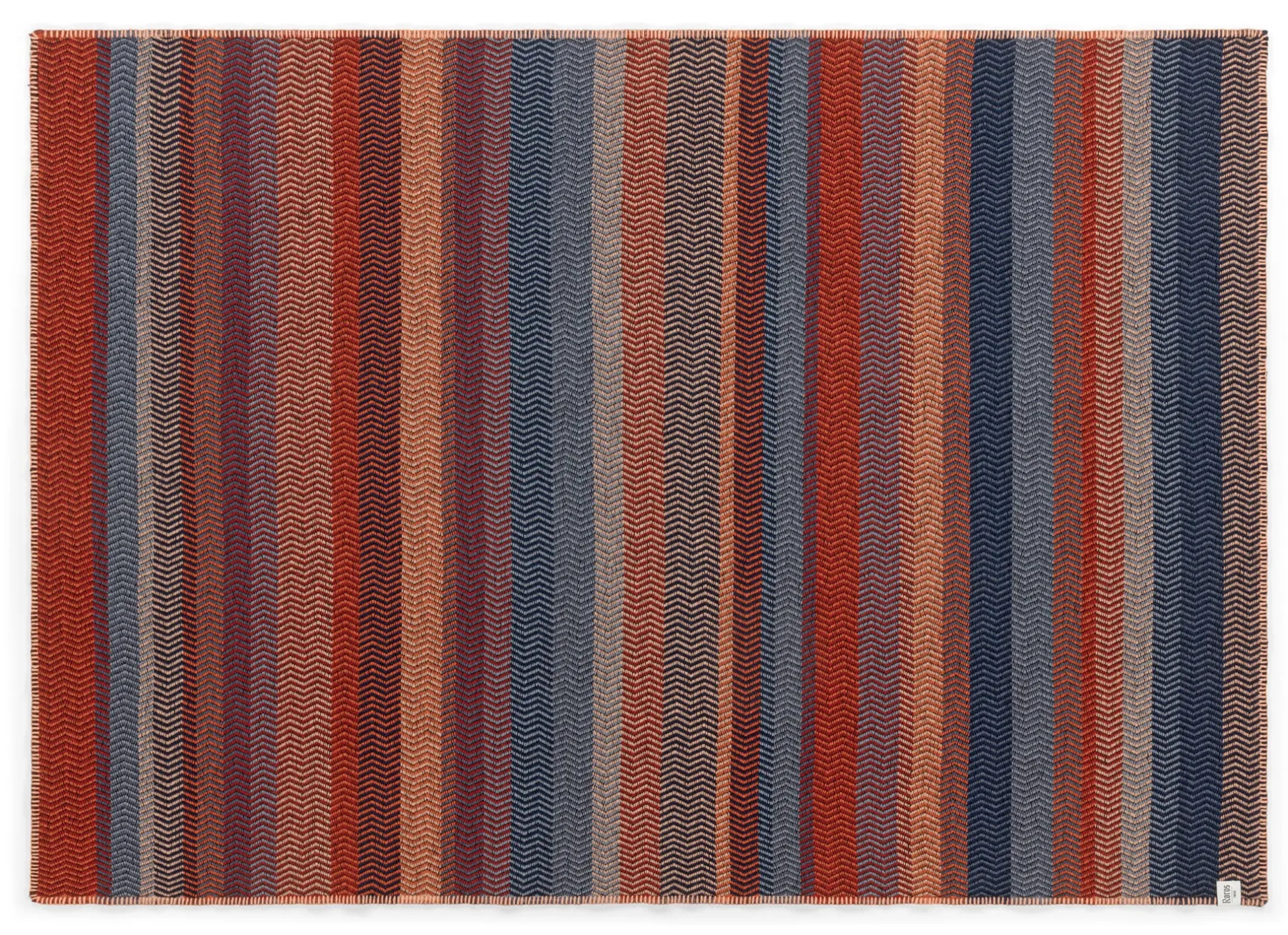 Der Entwurf Fri ist stark von der norwegischen Tradition kleiner, rechteckiger Tischdecken namens „løpere“ inspiriert. Variationen dieser Textilien sind in fast jeder norwegischen Berghütte zu finden. Typisch ist der sich wiederholende Farbrhythmus, der bei dieser Interpretation für Røros Tweed etwas aufgelöst wird: Die Farben verschieben sich scheinbar zufällig auf einem weichen Zickzackmuster. Aus weicher, norwegischer Lammwolle gewebt, hat die Decke Fri einen angenehm schmiegsamen Griff. Die Kanten sind rundum mit farblich passendem Wollgarn umkettelt. Kissenbezüge aus Lammwolle mit dem gleichen Muster finden Sie ebenfalls in unserem Sortiment.