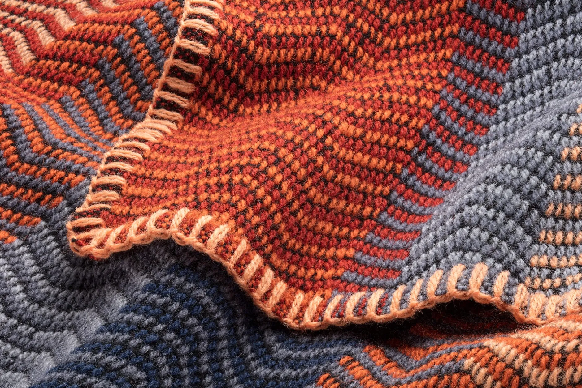- Dezenter Farbrhythmus aus zickzackförmigen Streifen in warmen Naturtönen