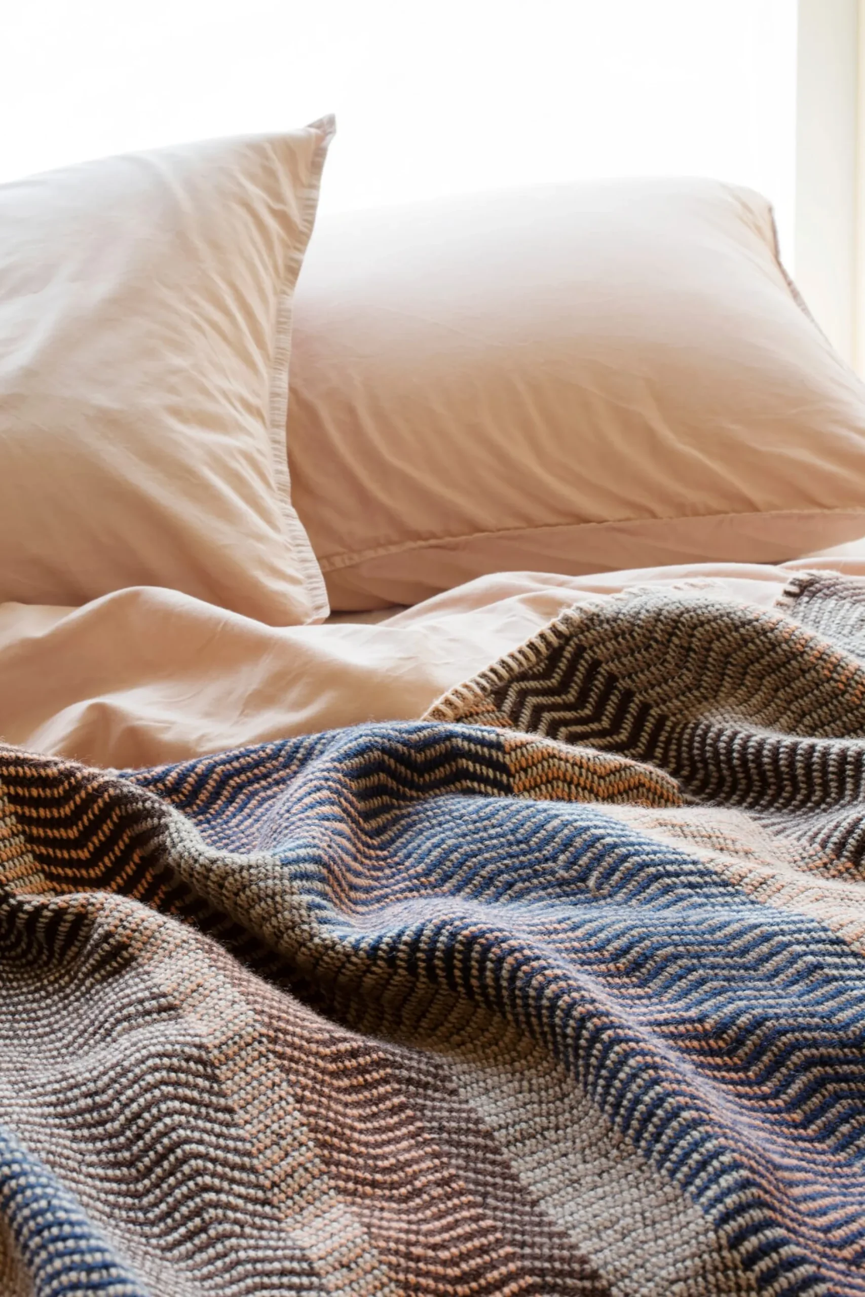 - Dezenter Farbrhythmus aus zickzackförmigen Streifen in warmen Naturtönen