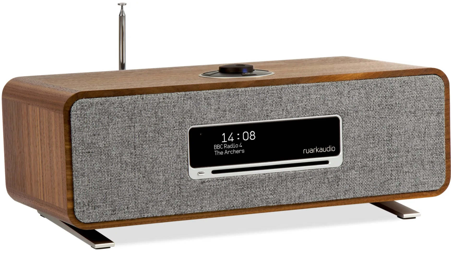Optisch kommt die R3S Ruark-typisch klar und aufgeräumt daher. Auf dem Gehäuse sitzt die Regeleinheit, die an die Wählscheibe eines Telefons erinnert; Ruark Audio nennt sie RotoDial. Ihre wenigen Tasten lassen sich intuitiv bedienen. Vorn sitzt mittig zwischen den Lautsprechern das gestochen scharfe, aus jedem Winkel ablesbare OLED-Display, das die Uhrzeit und Informationen zu Programmen und Einstellungen anzeigt. Seine Helligkeit kann sowohl im aktiven als auch im Stand-by-Betrieb eingestellt werden. Darunter folgen die Öffnung des CD-Laufwerks und der Ein-Aus-Schalter. Schließlich kann die R3S auch als Wecker dienen. Dank zweier Weckzeiten und einstellbarer Weckerlautstärke erfolgt die Rückkehr in den Tag wann und wie Sie es wünschen. Eine Schlummerfunktion ist ebenfalls vorhanden.