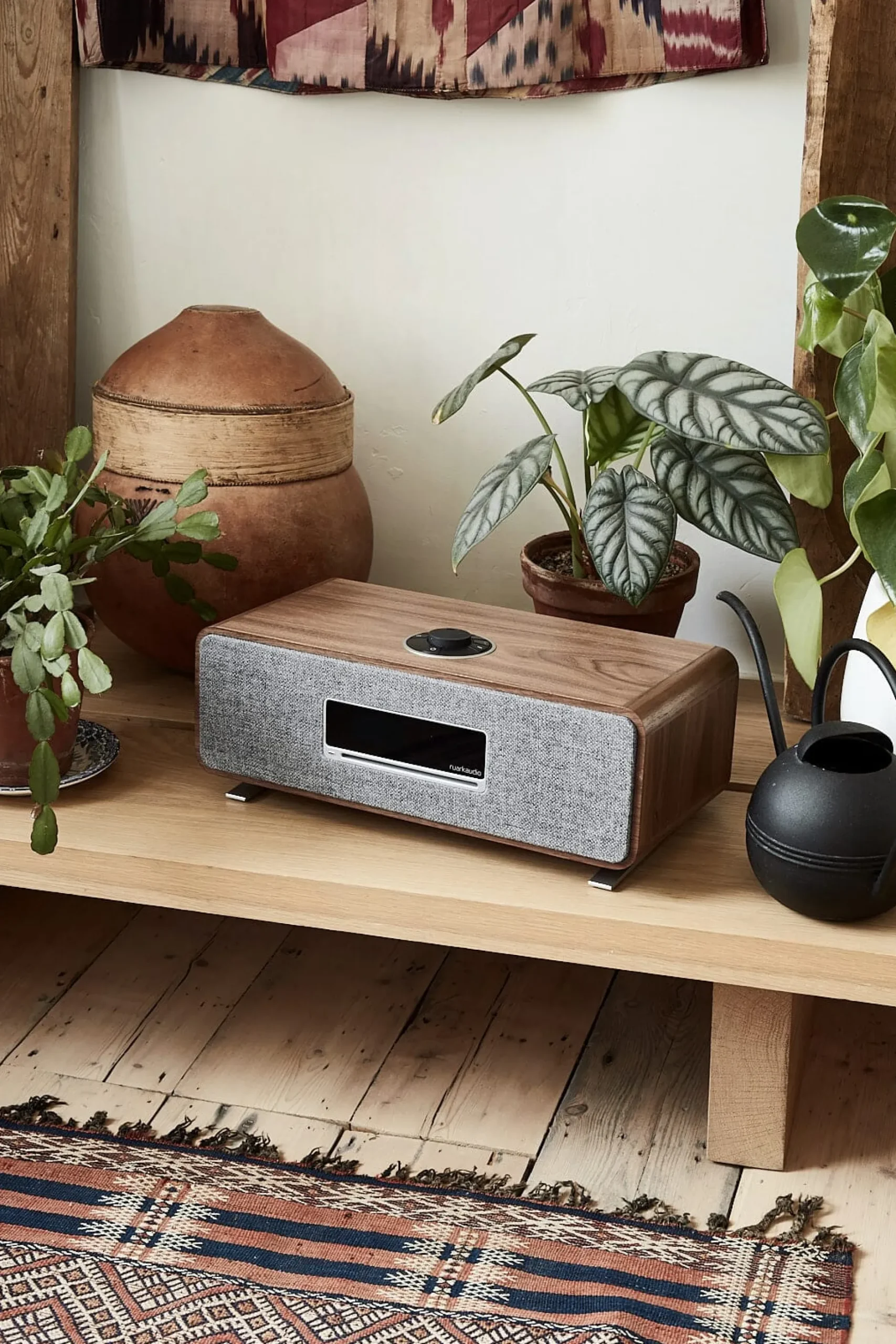Die kompakt gebaute Tisch-Stereoanlage R3S überzeugt durch einen ausgereiften Klang, der selbst anspruchsvolle Hörer zufriedenstellt. Dafür sorgen die von Ruark Audio entwickelten NS+ Lautsprechereinheiten, die von einem integrierten HiFi-Class AB-Verstärker angesteuert werden, der besonders verzerrungsarm und gleichzeitig effizient arbeitet. Im Zusammenspiel mit einer sinnvoll programmierten, hochentwickelten DSP-Unterstützung (DSP steht für Digitaler Signalprozessor) ergibt sich bei jeder Lautstärke ein ausgewogenes Klangbild mit realistischer, stereophoner Raumabbildung. Über den Line-Ausgang lässt sich darüber hinaus ein (optional erhältlicher) Ruark Subwoofer anschließen, der dem Klang noch mehr Volumen gibt. Dank der 3,5-mm-Klinkenbuchse auf der Rückseite der R3S können auch Kopfhörer angeschlossen werden.