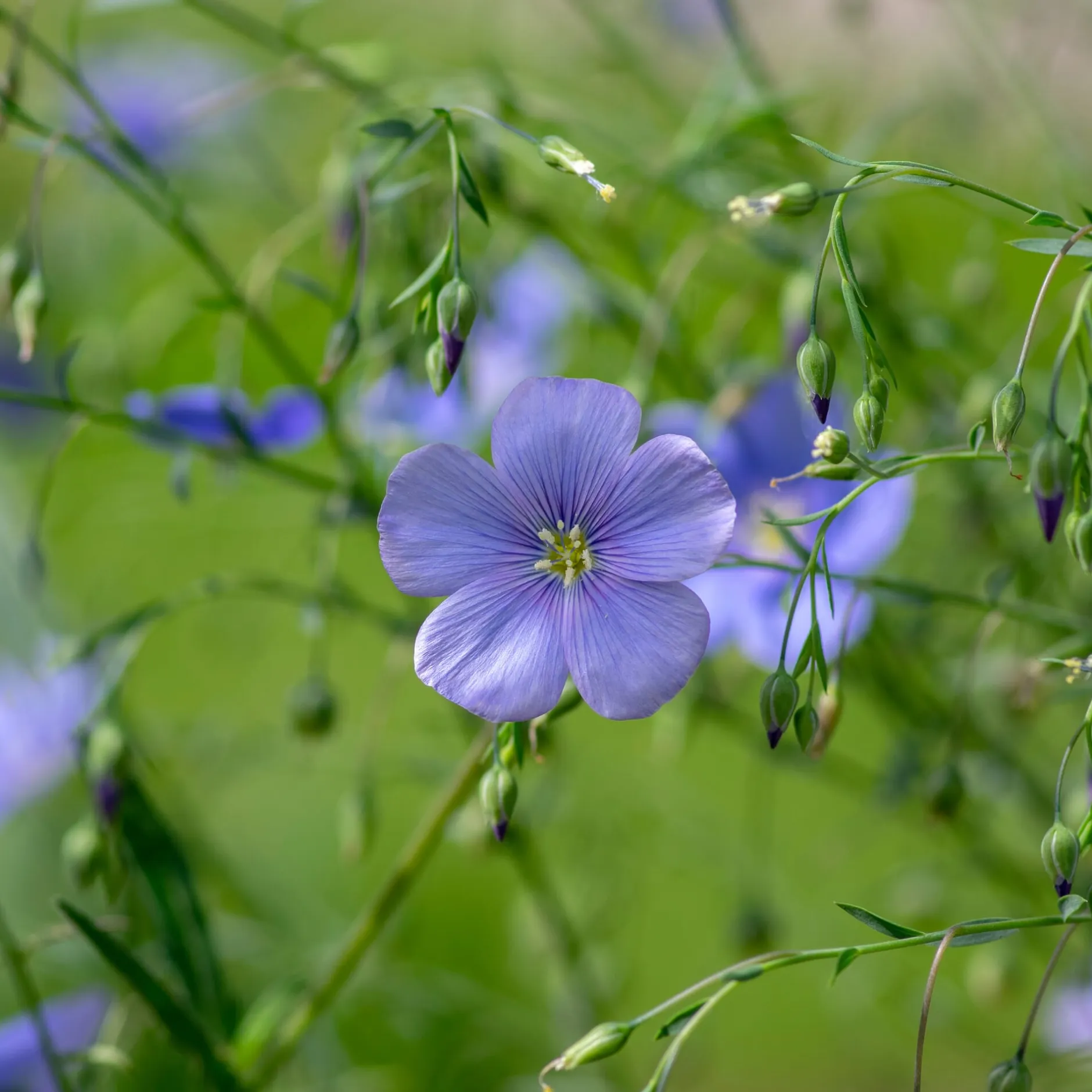 Diese uralte Kulturpflanze wird bis heute zur Öl- und Fasergewinnung (Flachs) angebaut, darüber hinaus ist sie von außerordentlichem Zierwert. Die zarten, schmalen Blätter von grau-grüner Färbung untermalen perfekt das leuchtende Himmelblau der schalenförmigen Blüten. Die lange Blütezeit erstreckt sich von Mai bis August. Die einjährige, bis 80 cm hohe Pflanze versamt sich gut am passenden Standort.