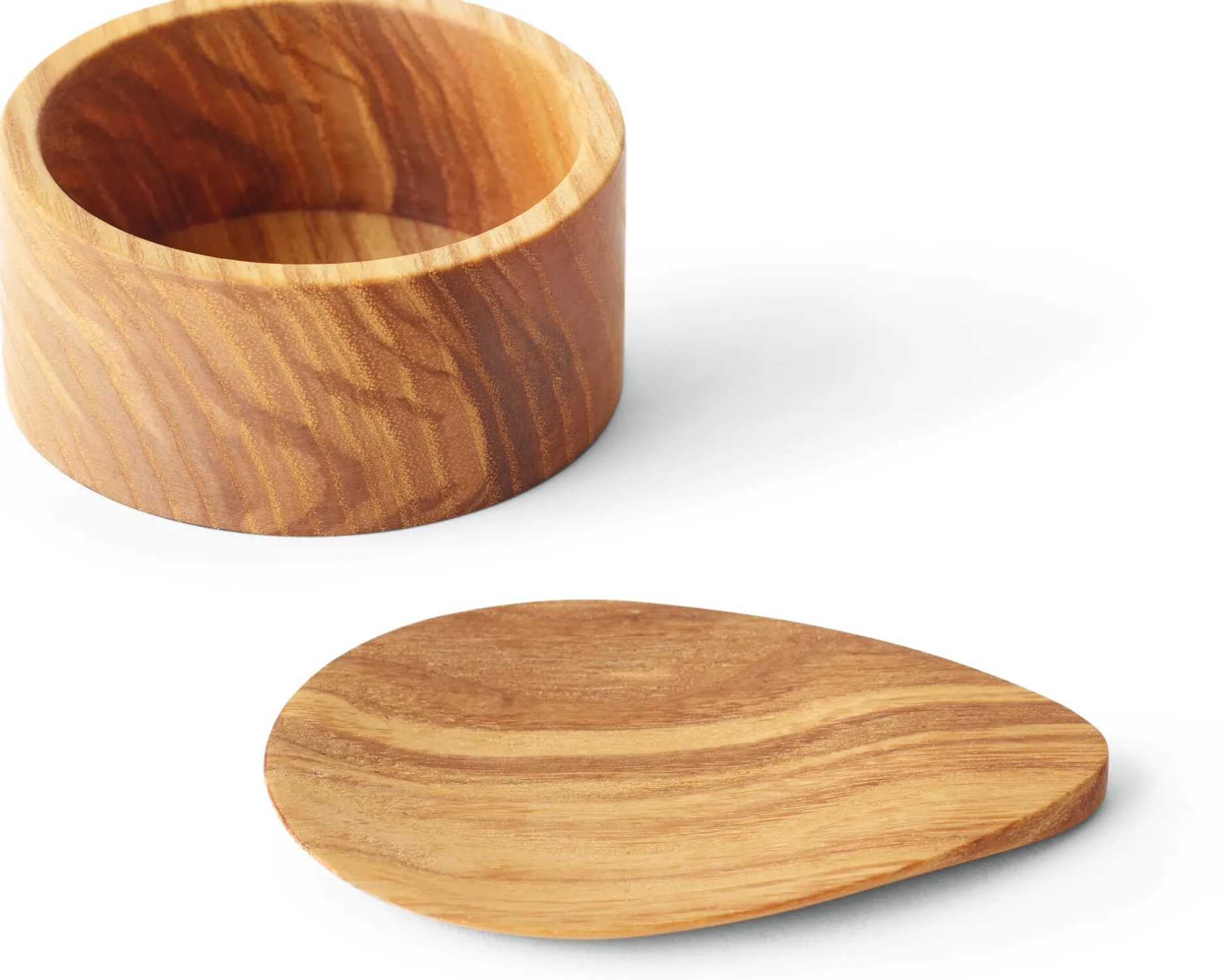 Charaktervolles Salzdöschen – handgedreht aus Eschenkernholz. Das ist besonders hart und formstabil und hat eine markante Maserung. Eingelassen mit Leinöl, wird das Holz unempfindlich und seine Maserung intensiv herausgearbeitet. Mit dem flachen Löffel, der gleichzeitig als Deckel dient, lassen sich auch feine Salzflocken behutsam und ohne zu brechen entnehmen und streuen. Ideal für die tägliche Schüppe feinen Salzes – am Esstisch oder am Kochtopf.