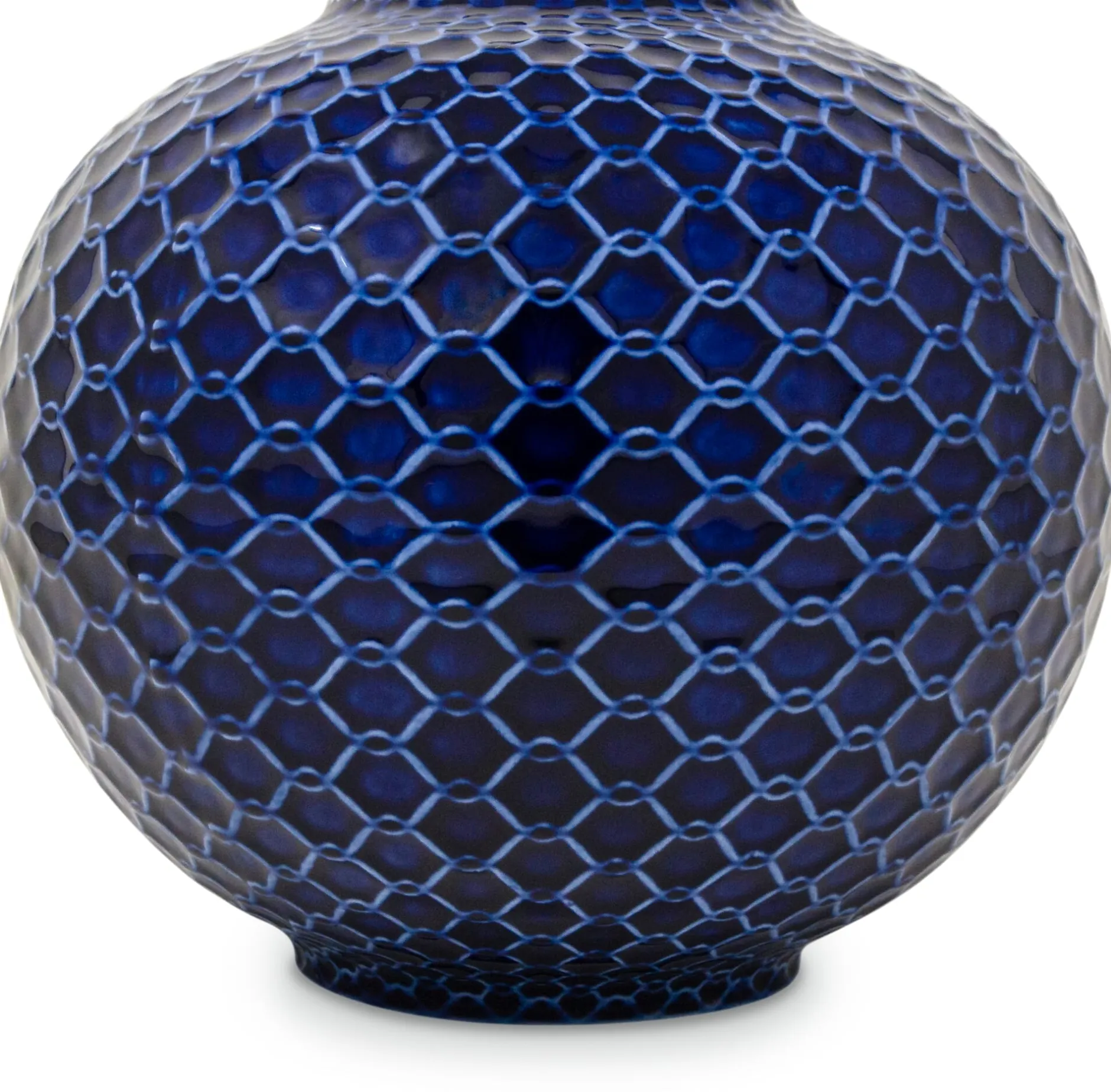 Die Gefäße und Geschirre aus der Serie REDE sind inspiriert von feinem Porzellan aus der japanischen Kultur einerseits und von der Struktur von Fischernetzen andererseits. Das Relief auf der Außenseite wirkt, als umspanne ein Netz die Formen. Die Kugelvase erinnert formal an japanische Lampions und eignet sich sowohl für voluminöse Sträuße als auch für einzelne Blütenstiele und Zweige. Das filigrane Gefäß wird in Galizien produziert, das feine Relief ist von Hand gefertigt.