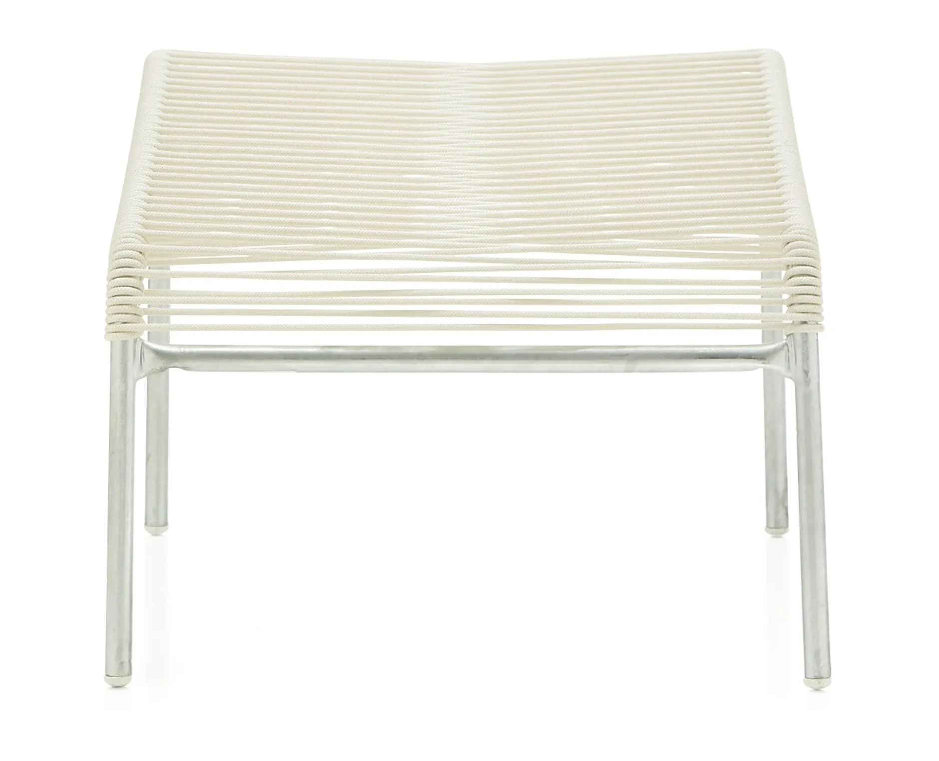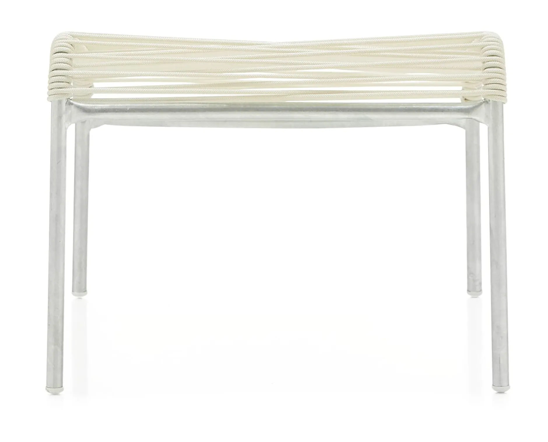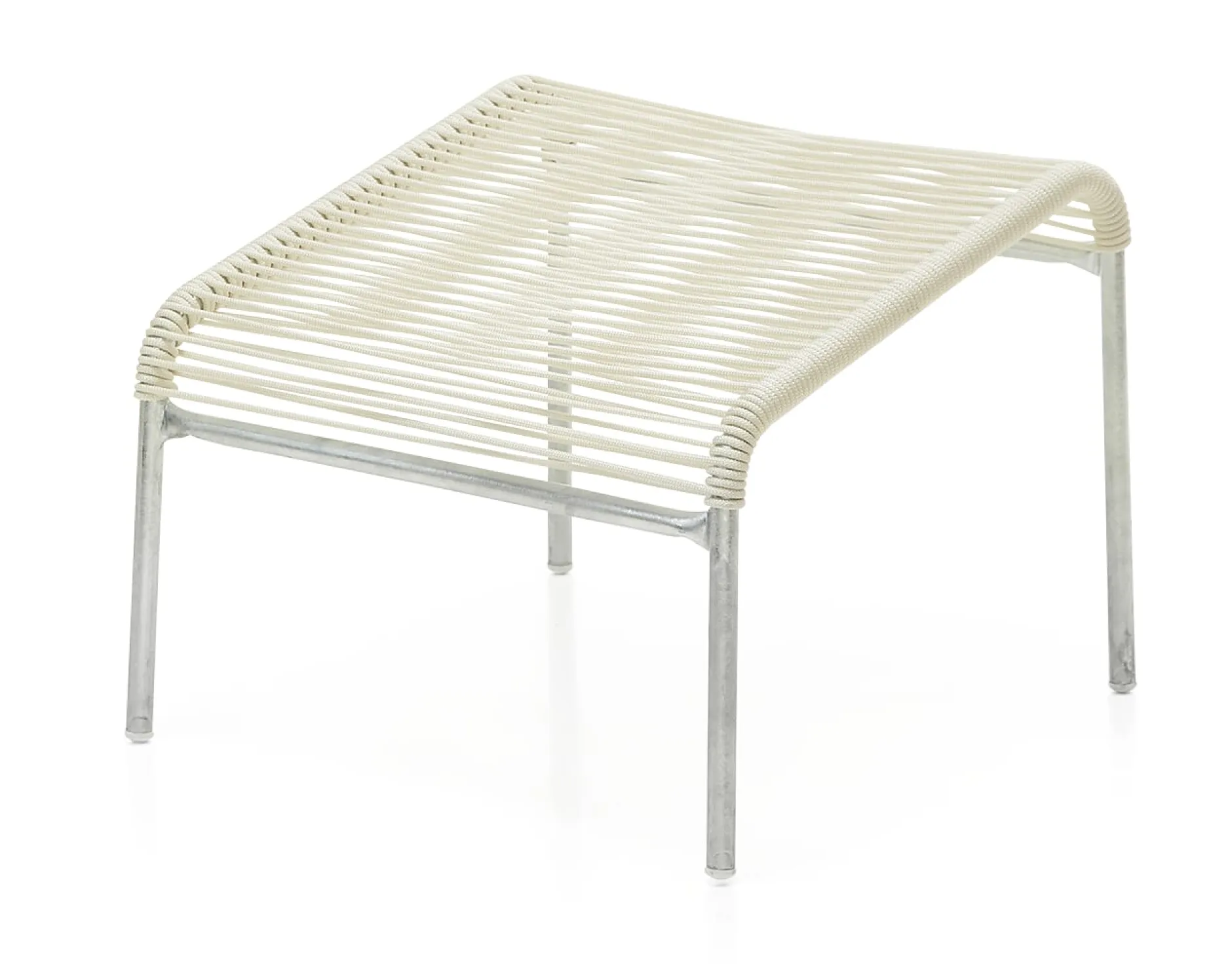 Der Hocker passend zum Hochlehner-Sessel aus der Serie SÄNTIS. Ein feuerverzinktes Stahlrohrgestell und eine Bespannung aus OceanYarn® sind die Ausstattungsmerkmale dieser Version.
