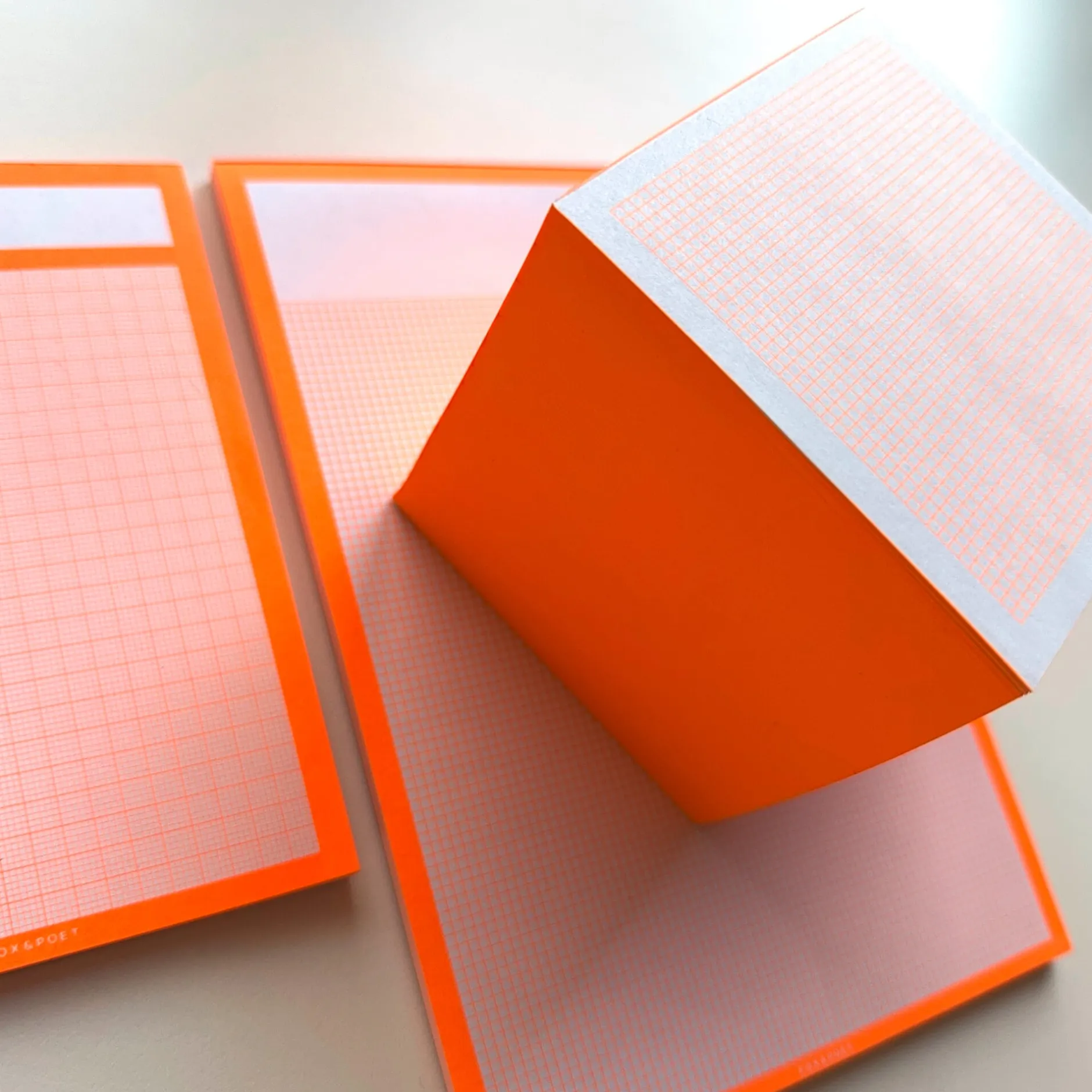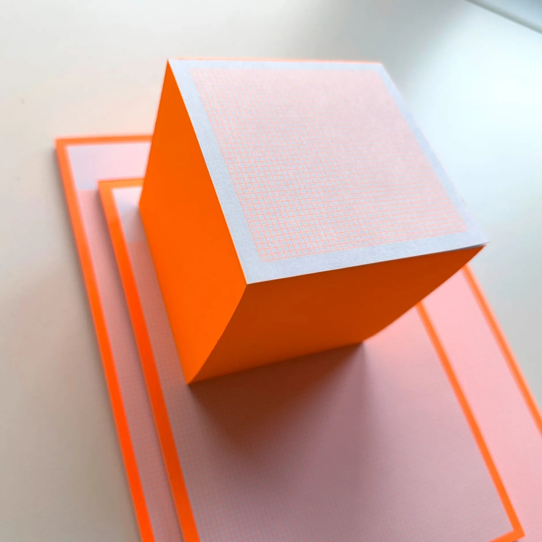 Dieser Block mit Karos in 2 mm in Neonorange ist ideal für Skizzen und Notizen. Ein besonderer Hingucker ist die farbige Leimkante.
