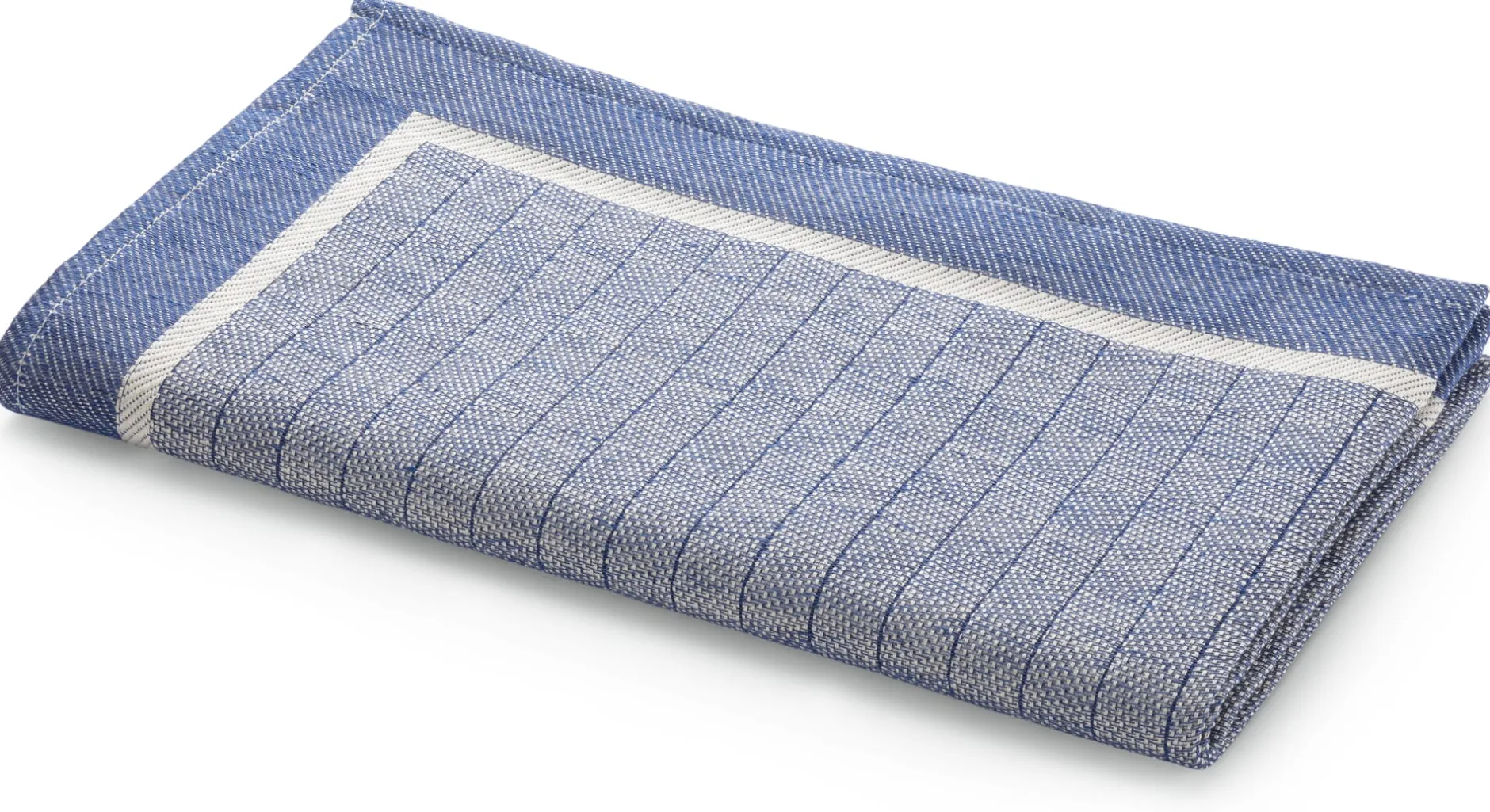 Gewebt wird das Geschirrtuch aus Halbleinen von der niedersächsischen Leinenfabrik Seegers & Sohn: festes Leinengarn (Garnstärke Nm 26) in der Kette und kräftiger Baumwollzwirn (Garnstärke Nm 50/2) im Schuss. Die Streifen und der umlaufende Rahmen sind jacquardgewebt und zeigen sich daher auf der Rückseite des Tuchs in gegengleicher Farbe. Wir empfehlen, das Geschirrtuch nach Gebrauch gut trocknen zu lassen, am besten über einem Handtuchhalter oder einer Leine ausgebreitet.