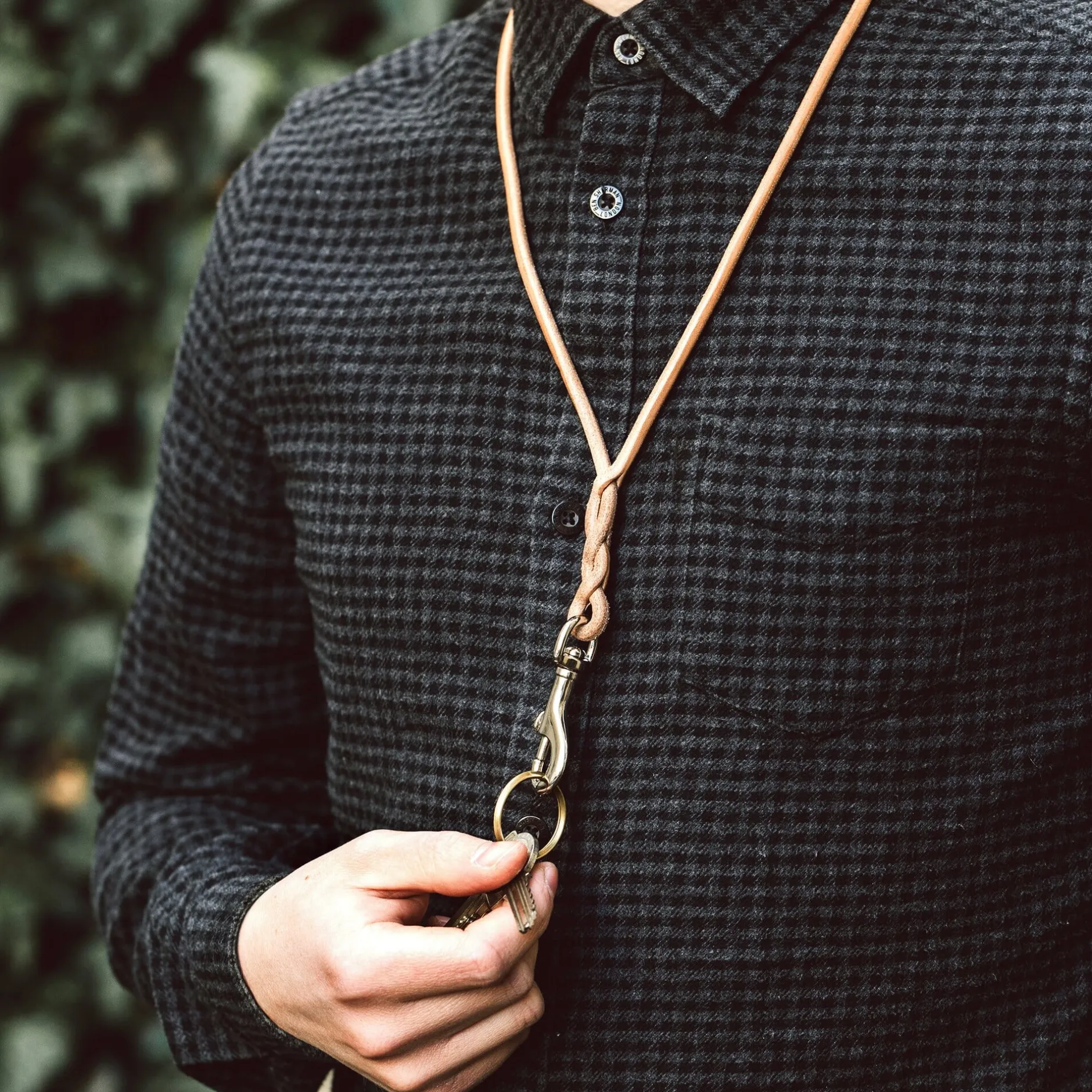 Wer viele Schlüssel hat, wird sich gelegentlich wünschen, diese nicht in der Hosentasche mitführen zu müssen. An diesem Band aus vegetabil gegerbtem, sorgfältig verarbeitetem Rindleder kann das Schlüsselbund praktischerweise um den Hals getragen werden und ist dann stets parat. Und hat man es doch in der (Hand-)Tasche, lässt sich das Schlüsselbund an dem langen Band leichter wiederfinden.