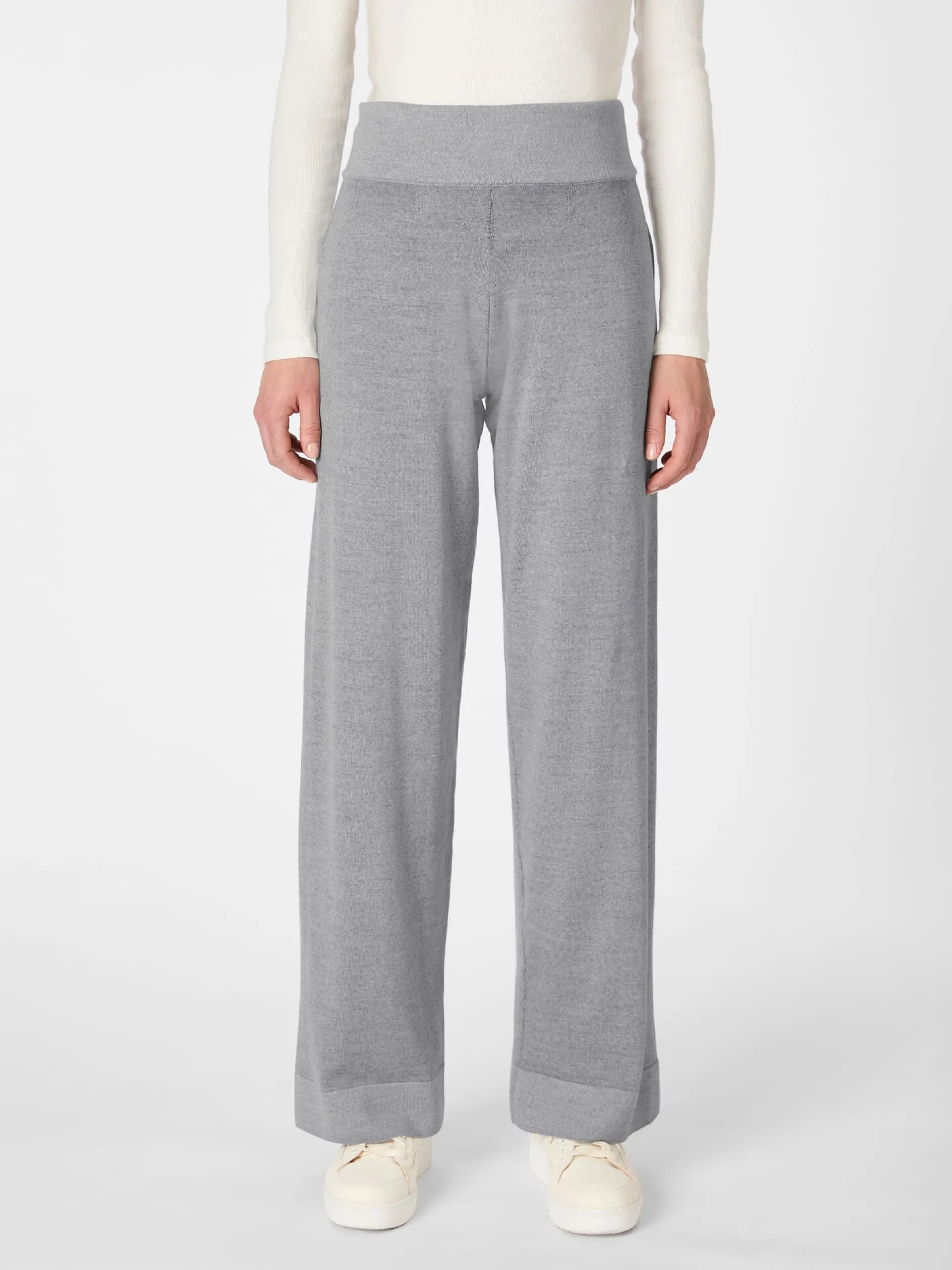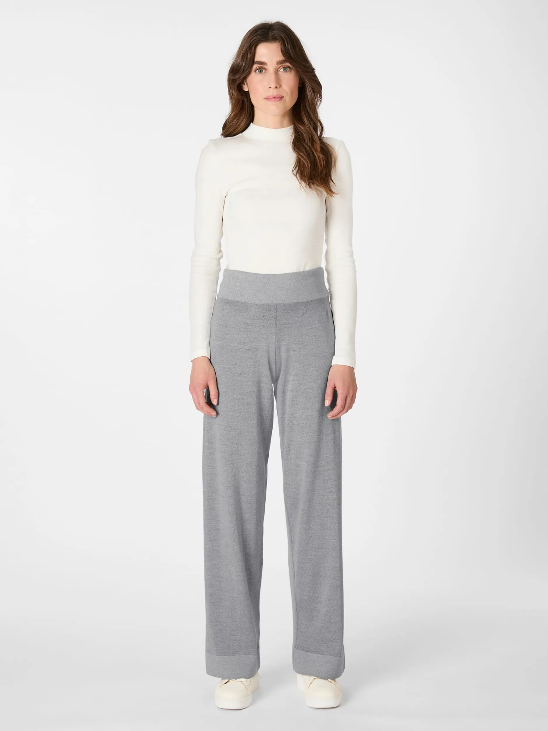 Herrlich bequem und wunderbar wärmend ist diese lässige Strickhose – ein Meisterstück aus dem Hause Seldom, das in Plattiertechnik gestrickt ist. Bei dieser Strickart wird mit zwei verschiedenfarbigen Garnsystemen gearbeitet, deren eine Farbe auf der rechten und die andere auf der linken Seite dominiert. Die jeweils zweite Farbe wird dabei nie völlig abgedeckt, wodurch auf beiden Seiten ein schöner Melangeton entsteht. Das feine, weich fallende Gestrick besteht zum Gutteil aus wärmender, ungemein schmiegsamer Merinowolle. Innen jedoch, wo es direkten Hautkontakt hat, ist es aus angenehm glatter und hautsympathischer Baumwolle aus kontrolliert biologischem Anbau gearbeitet. Die Passform ist leger gehalten, mit elastischem Bund und weitem, geradem Bein.