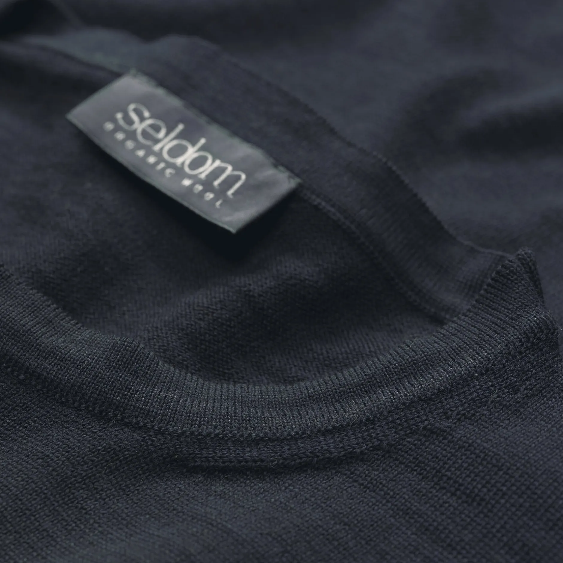 Seldom steht für ausgezeichnete handwerkliche Verarbeitung und die Auswahl bester Wollqualitäten. Dort geht man auch immer wieder neue Wege, zum Beispiel bei der Wahl dieser Merino-Schurwolle, die aus kontrolliert biologischer Tierhaltung stammt und für Seldom zu belastbaren Garnen verarbeitet wird. Glatt rechts formgestrickt, wird der Rundhalspullover in gerader Linie mit gut anliegenden Tubular-Saumabschlüssen an Ärmeln und Rumpf konfektioniert. Er kommt aus einer auf feine Gestricke spezialisierten Strickerei in Ungarn und wird dort nach Vorgaben von Seldom hergestellt. Durch ein besonderes, chlorfreies Verfahren besitzt der Pullover nur eine geringe Pillingneigung und ist daher sogar maschinenwaschbar.
