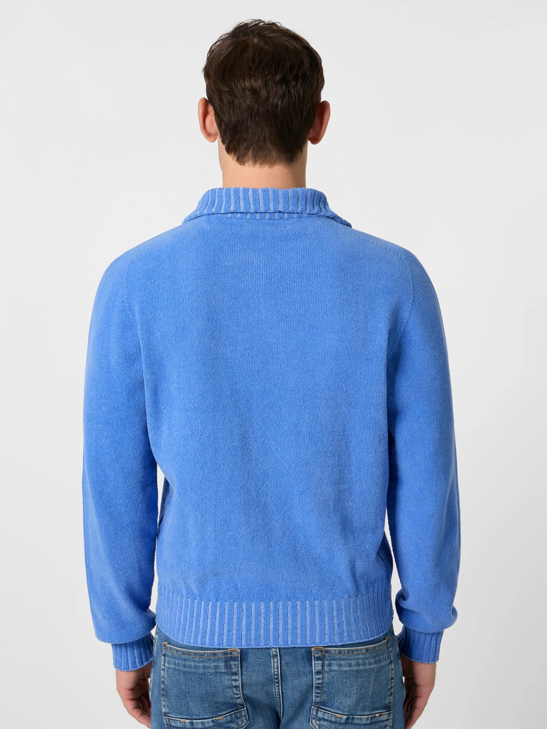 93% Baumwolle, 7% Polyamid. Metallreißverschluss. Hergestellt in Deutschland. Rückenlänge bei Größe L = 69 cm.