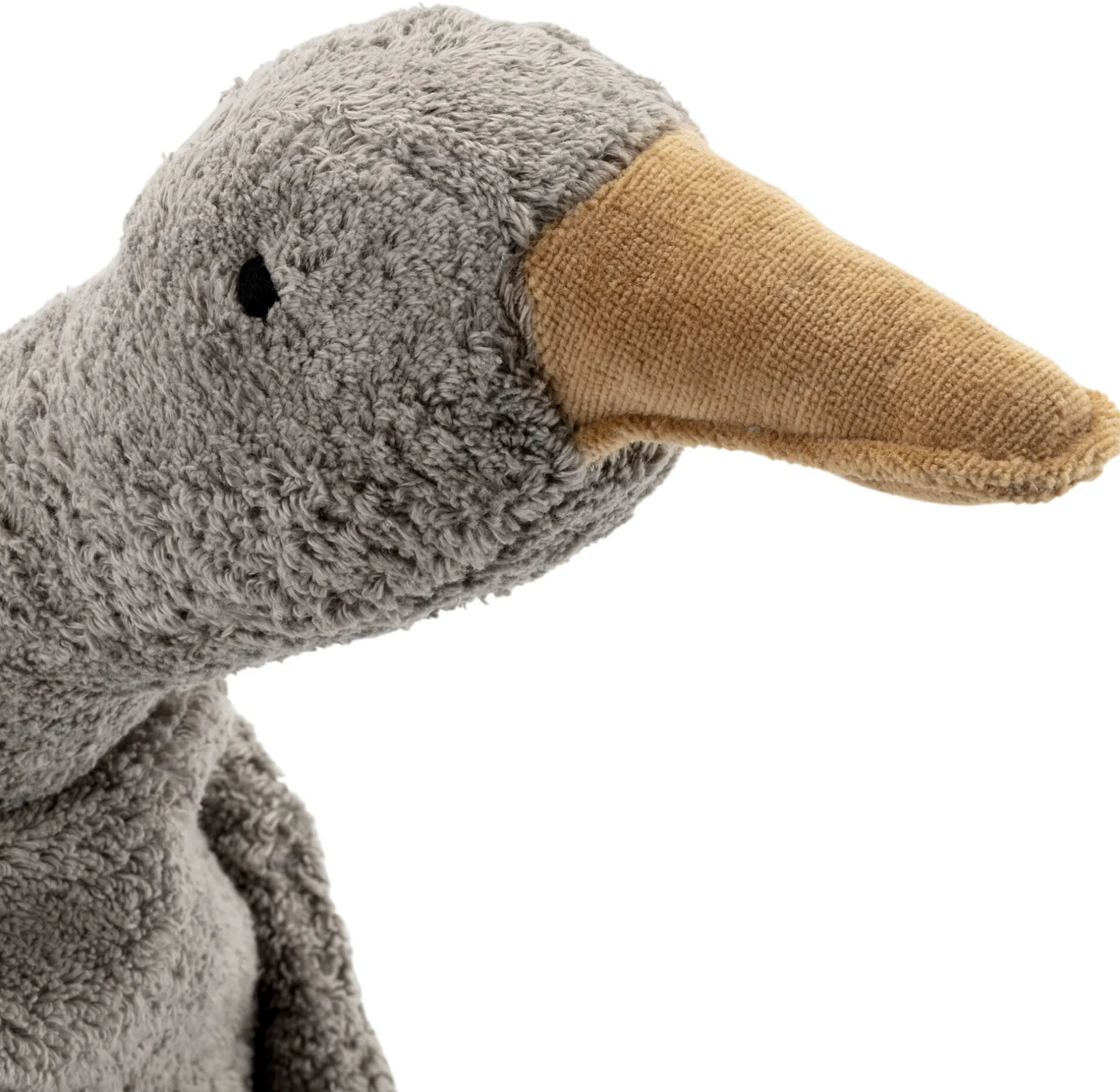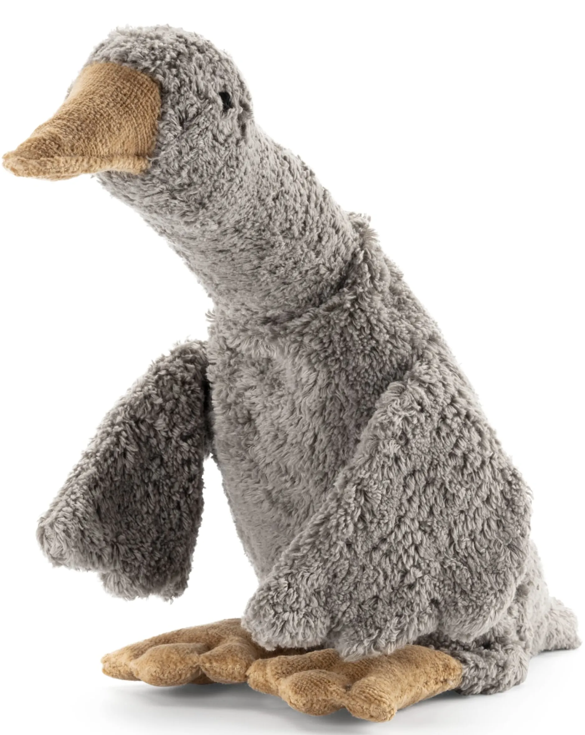 Schmusetier, Kissen und Wärmflasche in einem, ist die Gans mit ihrem lang gestreckten Hals in besonderem Maß dafür prädestiniert, als eine Art lieb gewonnenes „Beutestück“ an der Gurgel gepackt und über den Boden gezogen zu werden. Im Inneren des Entenvogels befindet sich ein herausnehmbares Baumwollkissen, das bei dem großen Tier mit Dinkelspreu, bei dem kleinen mit Traubenkernen gefüllt ist. Erwärmt kann Dinkelspreu unter anderem gegen Bauchschmerzen helfen, Traubenkerne können neben dem Wärmen auch zum Kühlen eingesetzt werden. Das Dinkelspreu- oder Traubenkernkissen sollte vor dem Erwärmen auf der Heizung, dem Kachelofen oder im Backofen (maximal handwarm) aus dem Tier genommen und in ein Baumwoll- oder Leinentuch gewickelt werden.