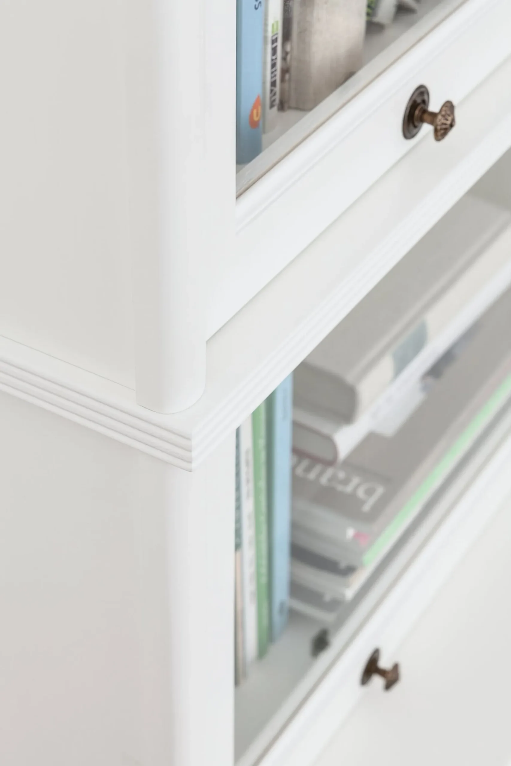 Bücherschrank. Im klassisch zurückspringenden Aufbau