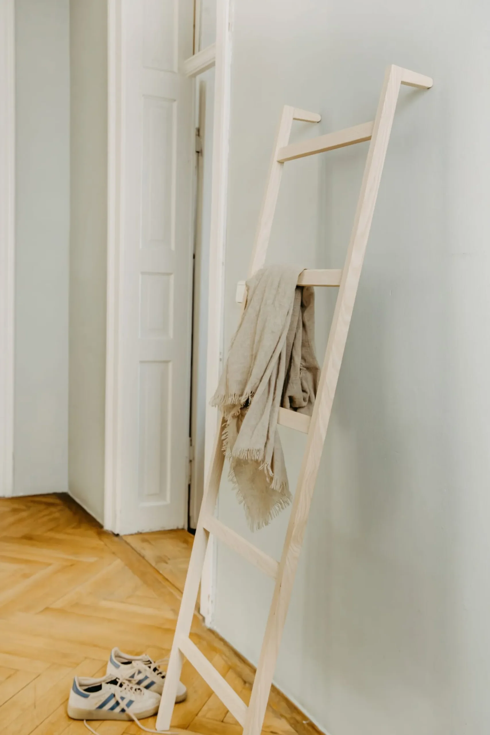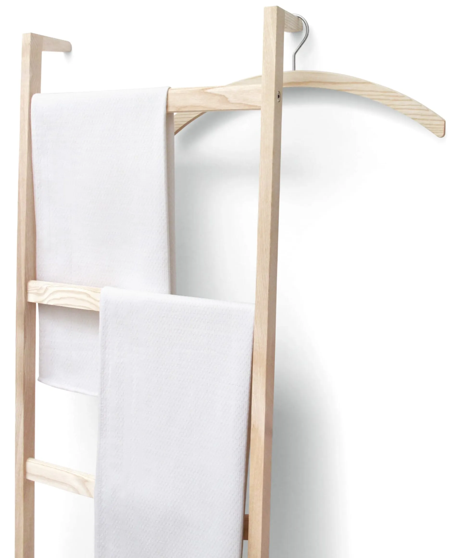 Montagelos angelehnt ist LEO schlichte Garderobe, Stummer Diener, Handtuchhalter – ein Helfer-Möbel für vielerlei Zwecke und Nutzen im Schlafraum, Bad oder Garderobe.