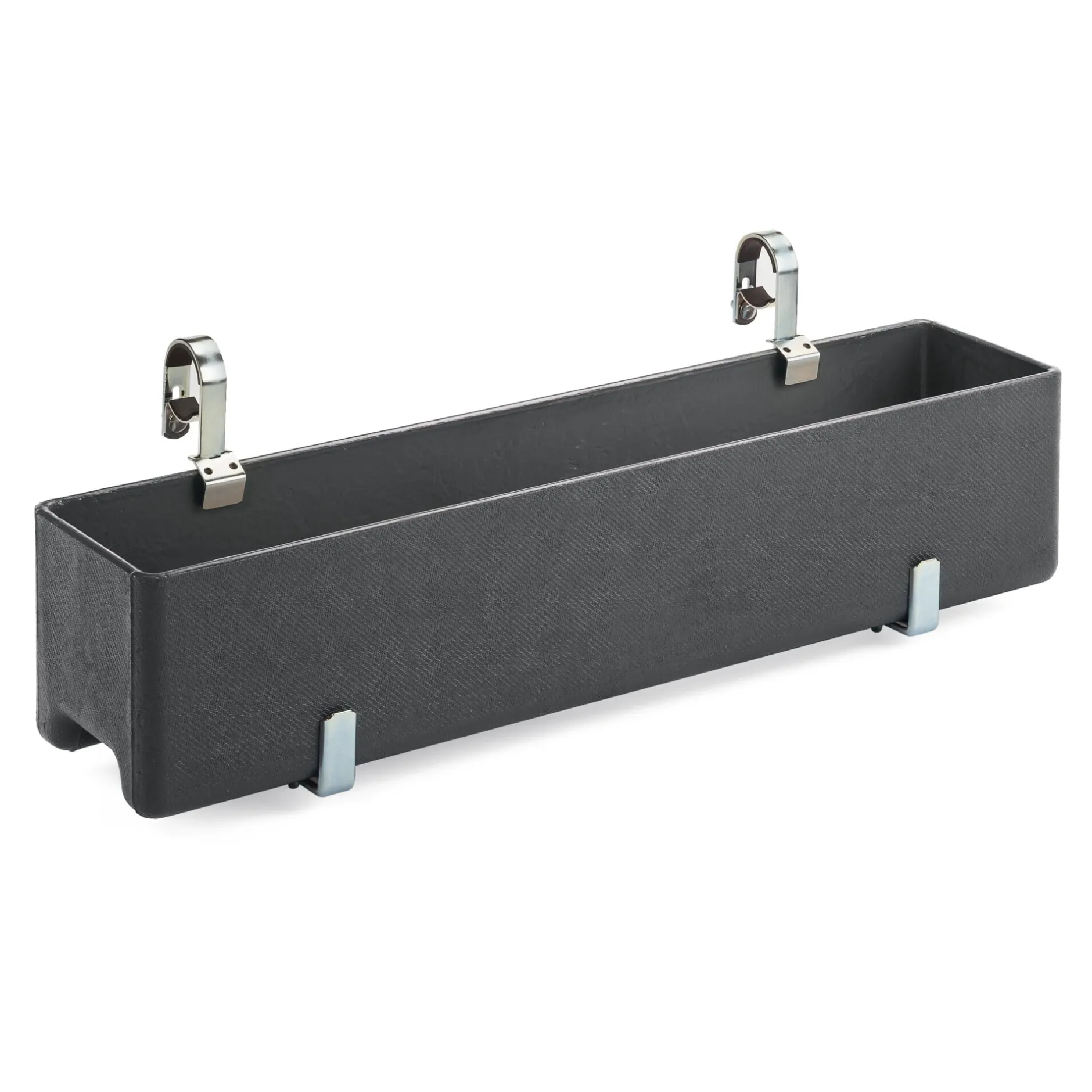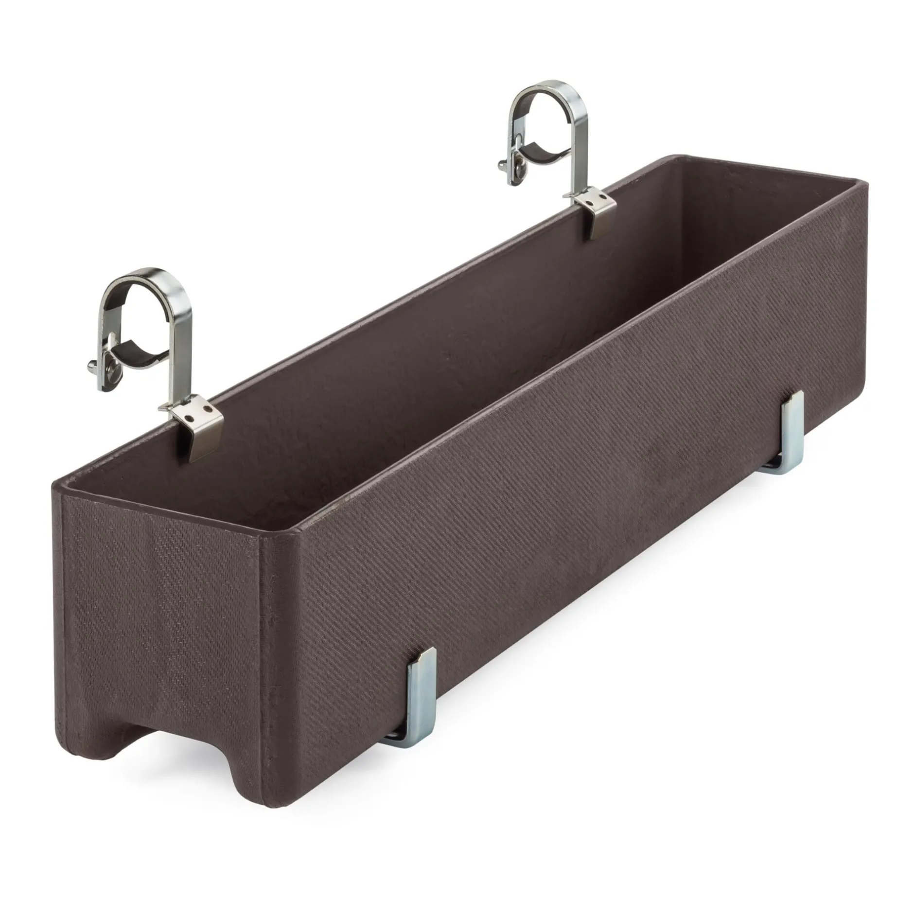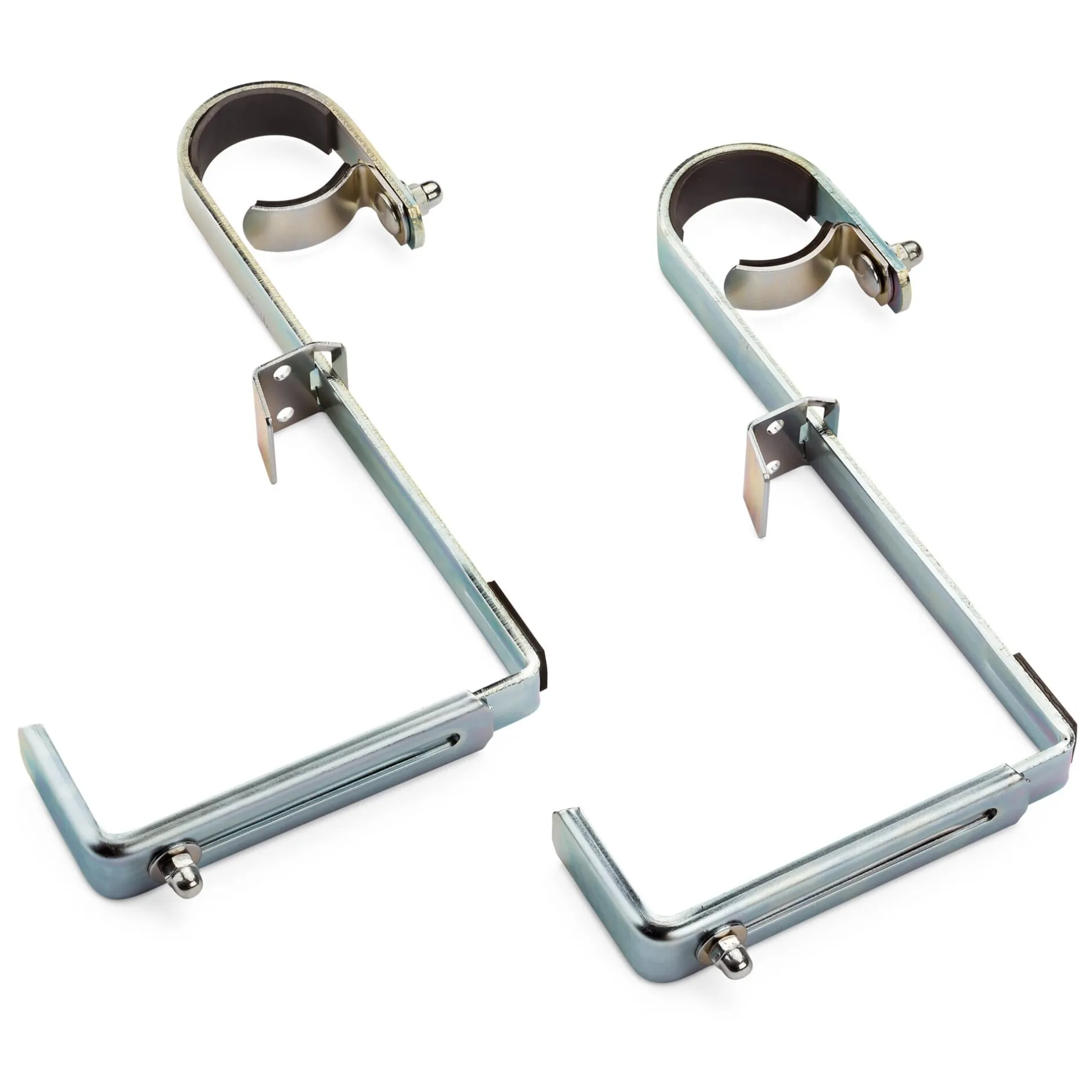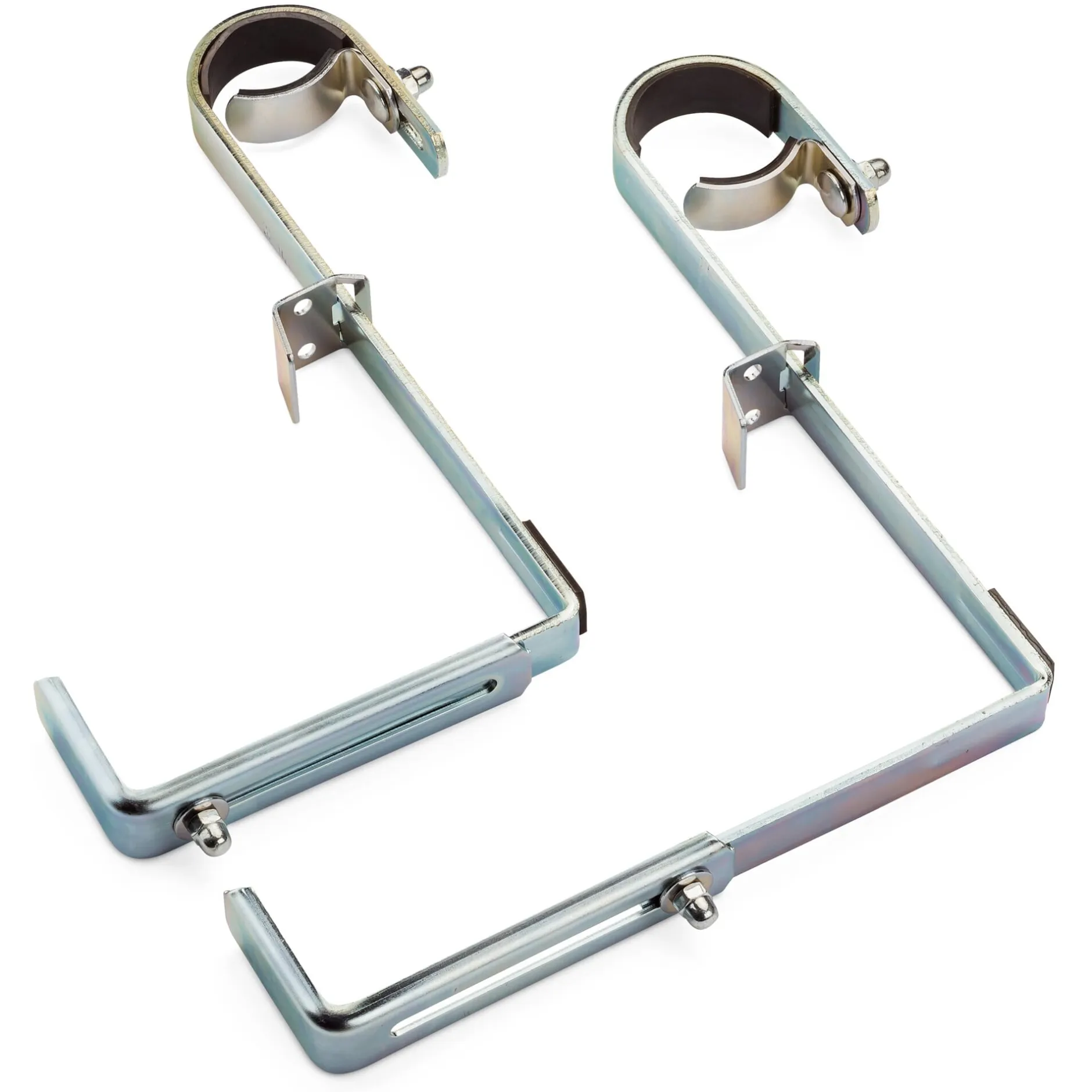 Für Rundgeländer von 2,8 bis 4,6 cm Ø. Stahl, galvanisch verzinkt (Stärke 2,2 mm). Höhe 27 cm, Breite 2,5 cm, Tiefe 13,5 bis 22,5 cm. Gewicht 890 g. Belastungsgewicht pro Paar max. 30 kg. Lieferung ohne Kasten. 1 Paar.