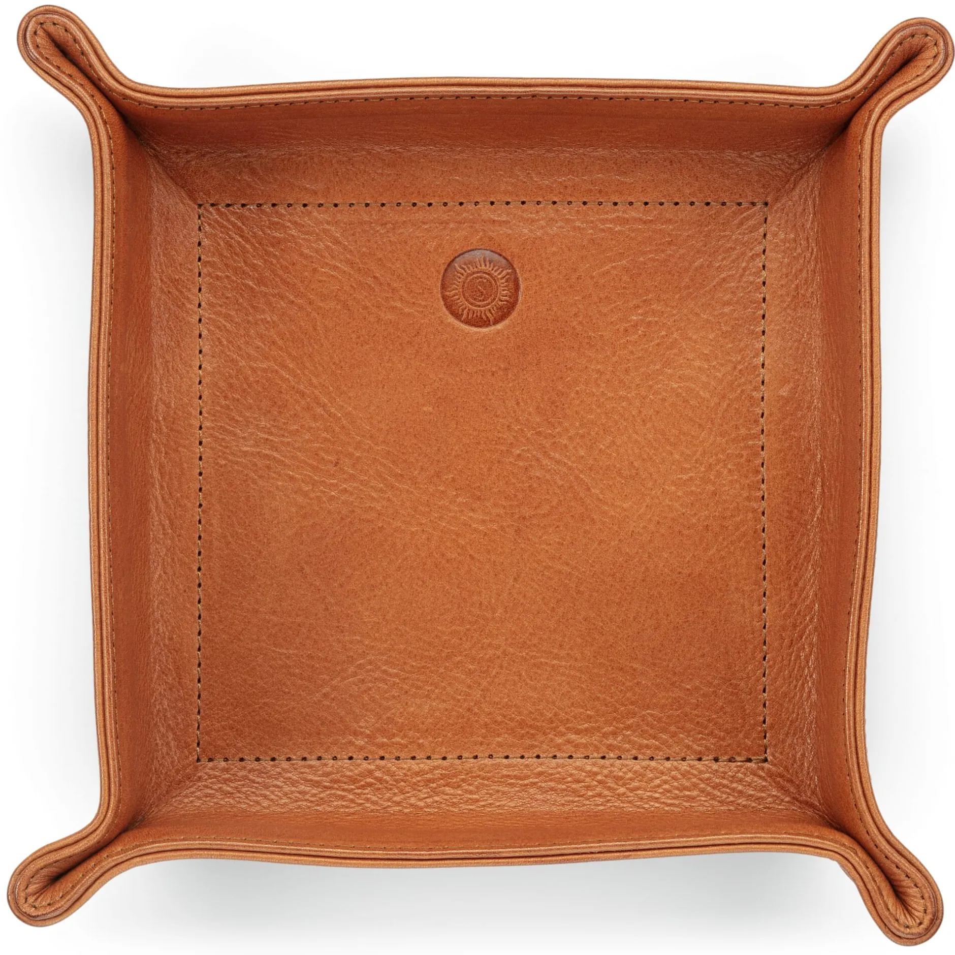 Klassischerweise wurden solche Taschenleerer aus Porzellan hergestellt. Unser Vide-poche fertigt Sonnenleder aus geschmeidigem, grubengegerbtem Rindleder – wie schwungvoll Sie Ihre Taschen auch leeren, das Leder sorgt dafür, dass die Kleinteile ohne lautes Porzellangeklapper abgelegt werden können (zu später Stunde durchaus von Vorteil, wenn niemand aus dem Schlaf geschreckt werden soll). Das kräftige Leder, wahlweise im typischen rötlichen Farbton des grubengegerbten Leders oder schwarz im Fass gefärbt, ist doppelt gelegt und wird mit sauber eingeschlagenen Kanten vernäht. Farblich passende lederbezogene Niete halten den Vide-poche in Schalenform. Materialtypisch nimmt auch hier das Leder mit der Zeit eine individuelle Patina an, die sich insbesondere beim naturfarbenen Leder zeigen wird.