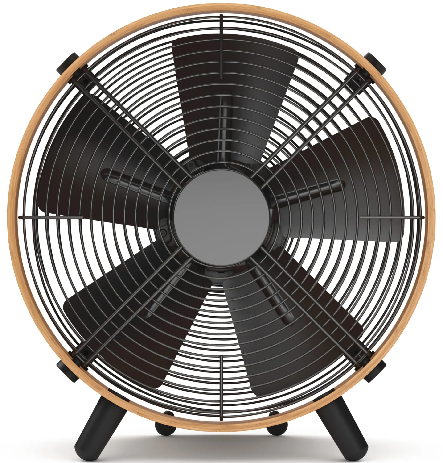 Gehäuse Bambus geölt, Flügel Aluminium, Abdeckung Stahl lackiert. Kunststoffkabel (Länge 1,9 m, Schutzkontaktstecker Typ F) und -füße. 8 Leistungsstufen. Geräuschpegel 28–54 dB(A), Leistungsaufnahme 1,7–22 W. Geeignet für Raumgrößen bis zu 40 qm/100 cbm. Höhe 37,6 cm, Tiefe 24 cm, Ø 35 cm. Gewicht 2,6 kg.