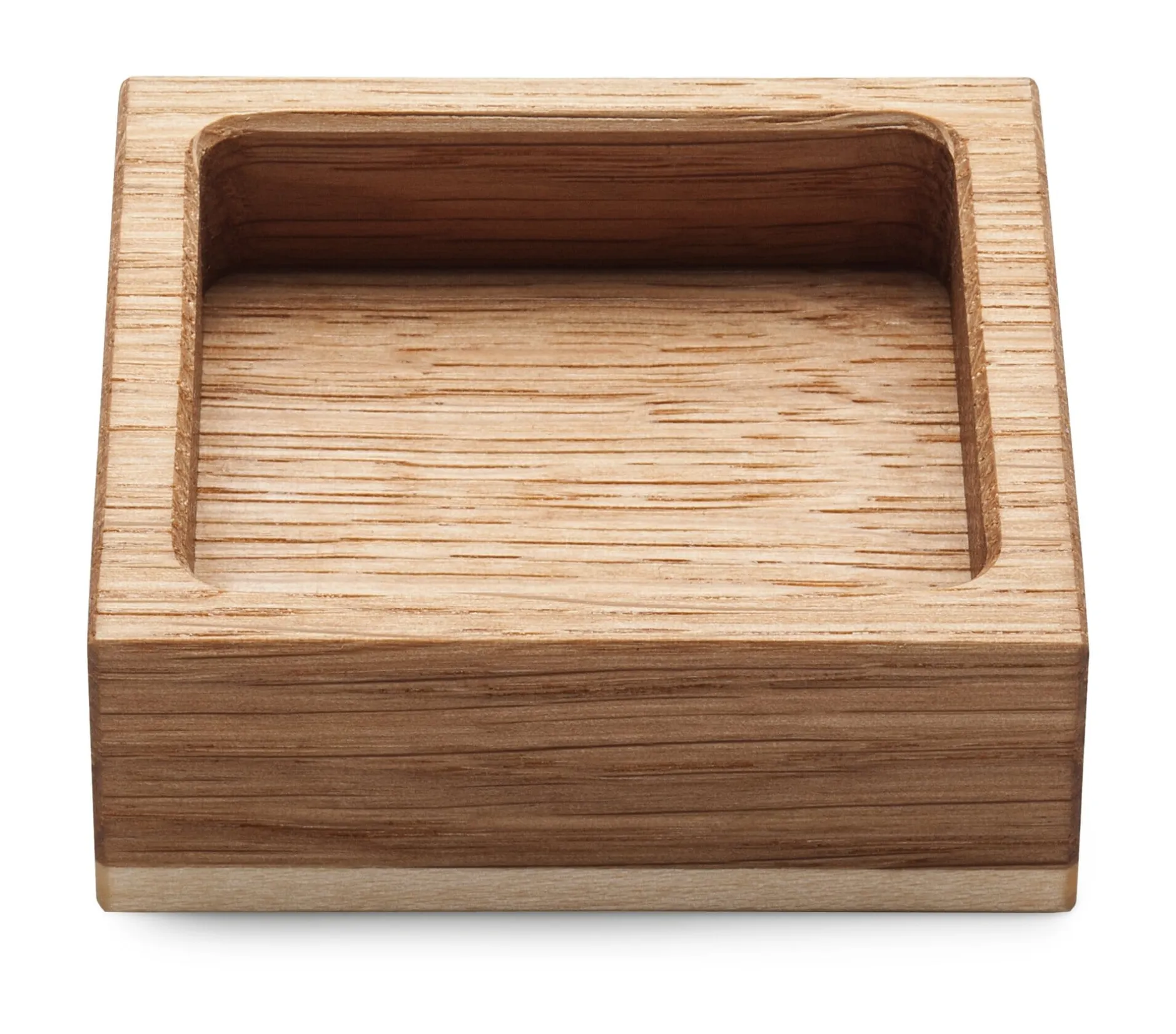 Quadratisch. Höhe 2,2 cm, Breite 6,2 cm, Tiefe 6,2 cm. Gewicht 35 g.
