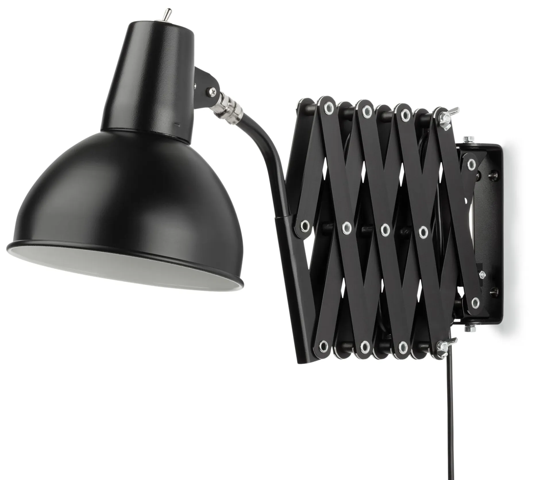 Ausladung 30 bis 110 cm. Gewicht 1,6 kg. Lieferung ohne Leuchtmittel und Befestigungsmaterial. Schutzkontaktstecker (Typ F).