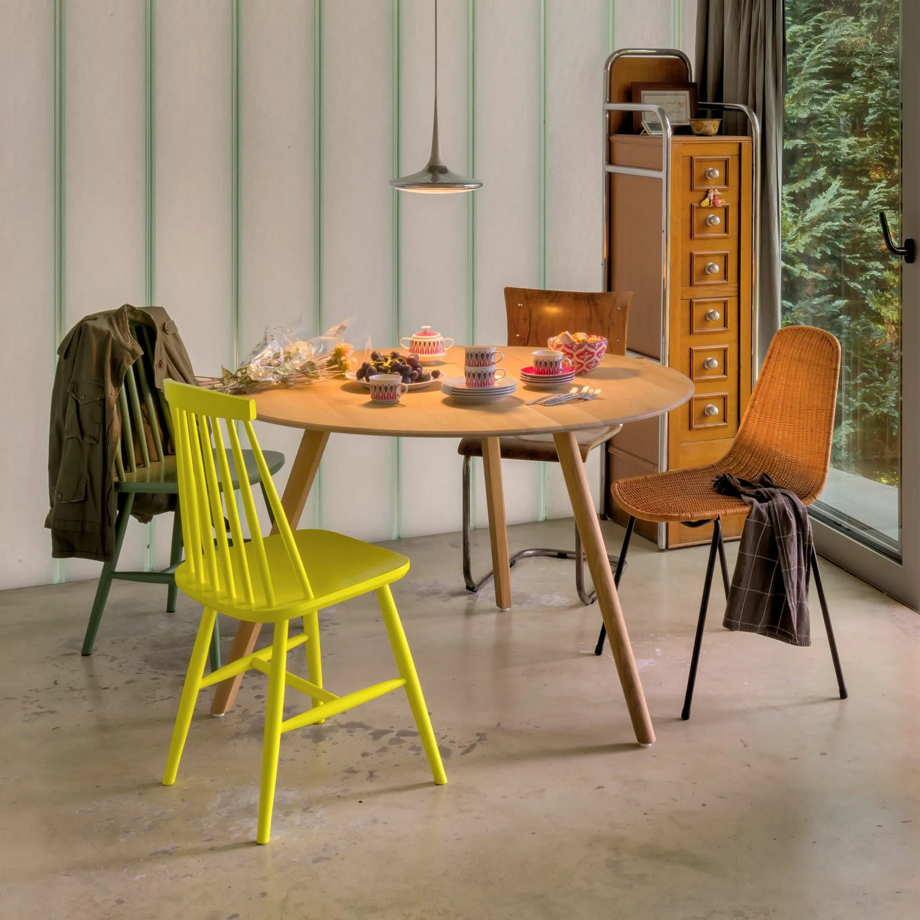 Internationales Multitalent: BASKET wurde vom Schweizer Architekten Gian Franco Legler für ein Restaurant namens BASKET gezeichnet. Schon Anfang der 1950er-Jahre erlebte der Stuhl hohe Popularität in den USA, nicht zuletzt wegen einer besonderen Auszeichnung für seine Gestaltung durch das MoMA in New York. Heute wird der Stuhl von einer australischen Firma in Indonesien beflochten. Das macht Sinn, denn der Werkstoff Rattan wird dort angebaut und unmittelbar verarbeitet. Formaler Minimalismus trifft bei BASKET auf minimalistischen Materialeinsatz. Das Geflecht aus Rattan, das die filigrane Stahlstruktur umspannt, bietet Flexibilität und hohen Komfort im Sitz und Rückenbereich, da es sich dem Körperdruck anpasst. BASKET ist für die Nutzung am privaten Essplatz wie in der Gastronomie geeignet.