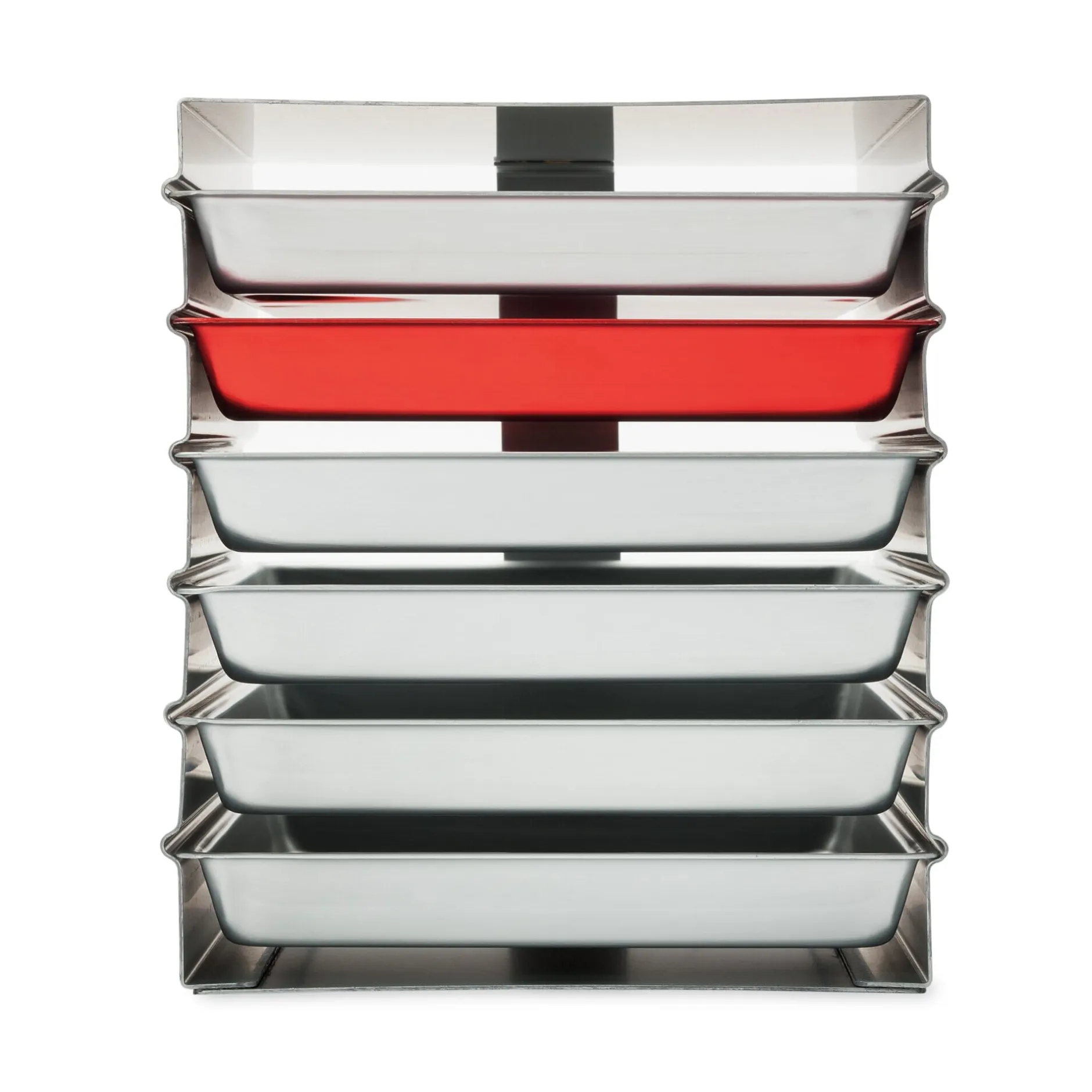 - Inklusive 6 Tabletts (1 in rot eloxiert)