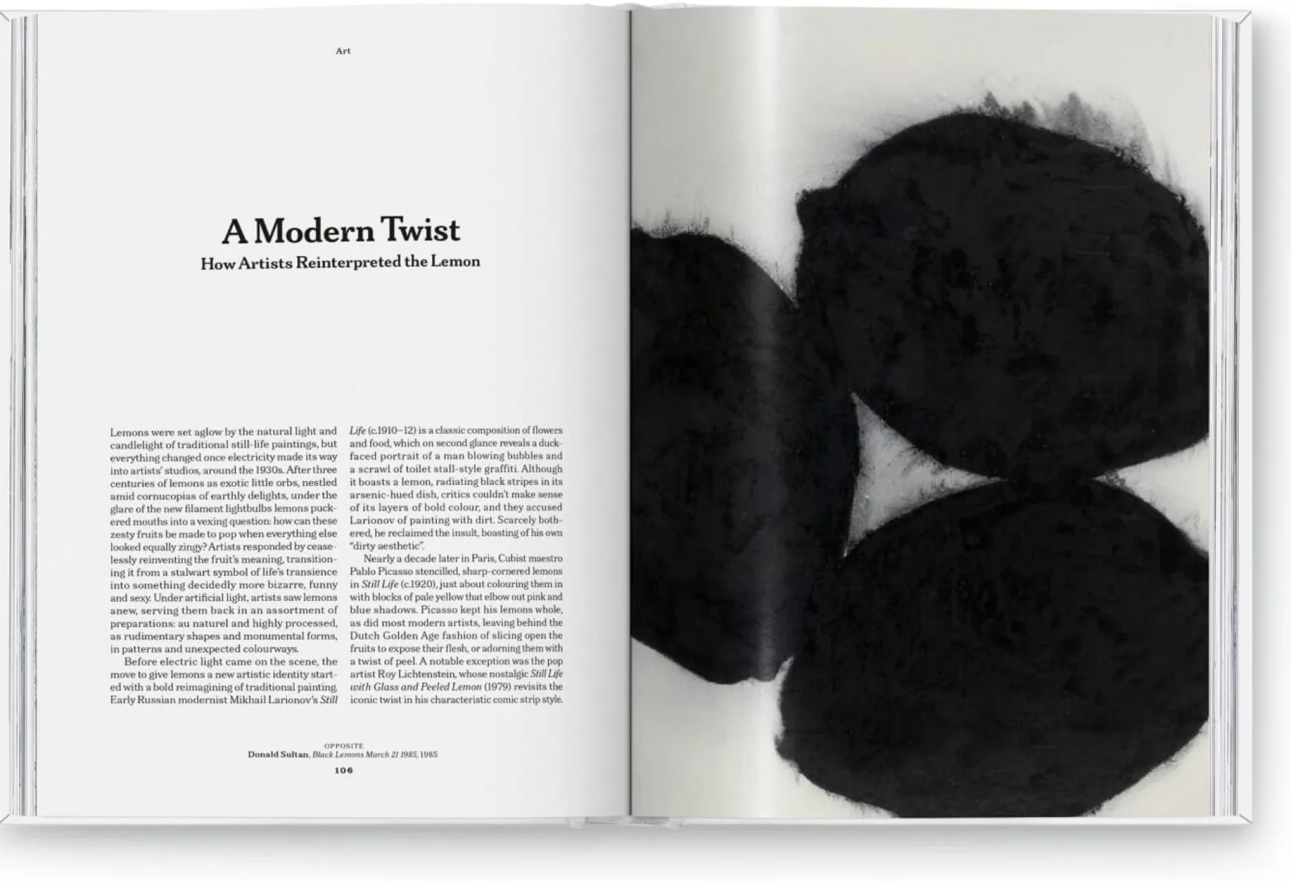 Der Bildband bietet faszinierende Einblicke in die Kunstgeschichte: Zitronen erscheinen in Stillleben alter Meister ebenso wie in modernen Werken von Picasso, Matisse oder Warhol. Ihre Präsenz reicht bis in die angewandte Kunst – sie ziert Art-and-Crafts-Tapeten ebenso wie mythologische Keramik. Auch Designer Philippe Starck ließ sich von der Frucht zu seiner ikonischen Zitruspresse Juicy Salif inspirieren, die bis heute als Designklassiker gilt.
