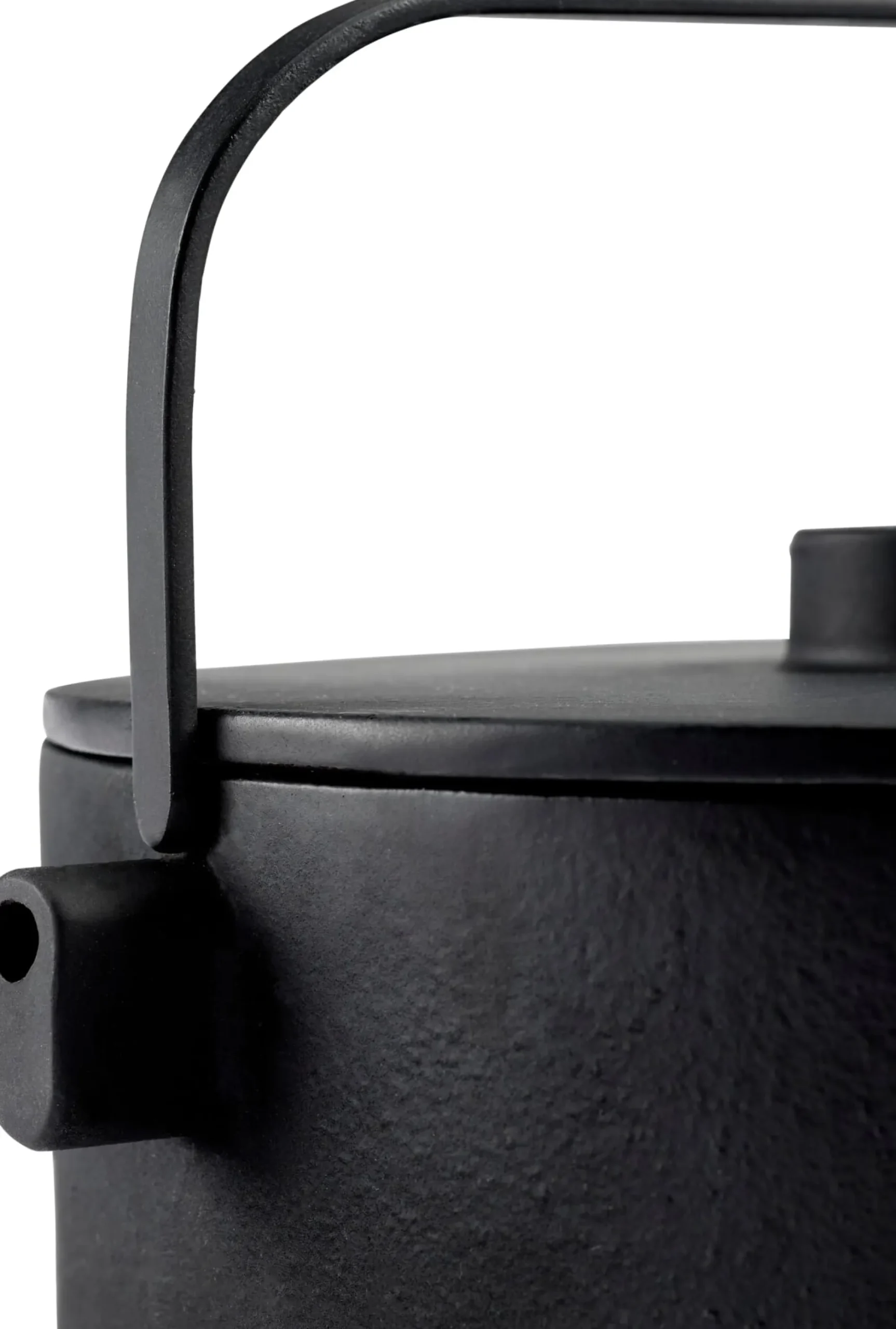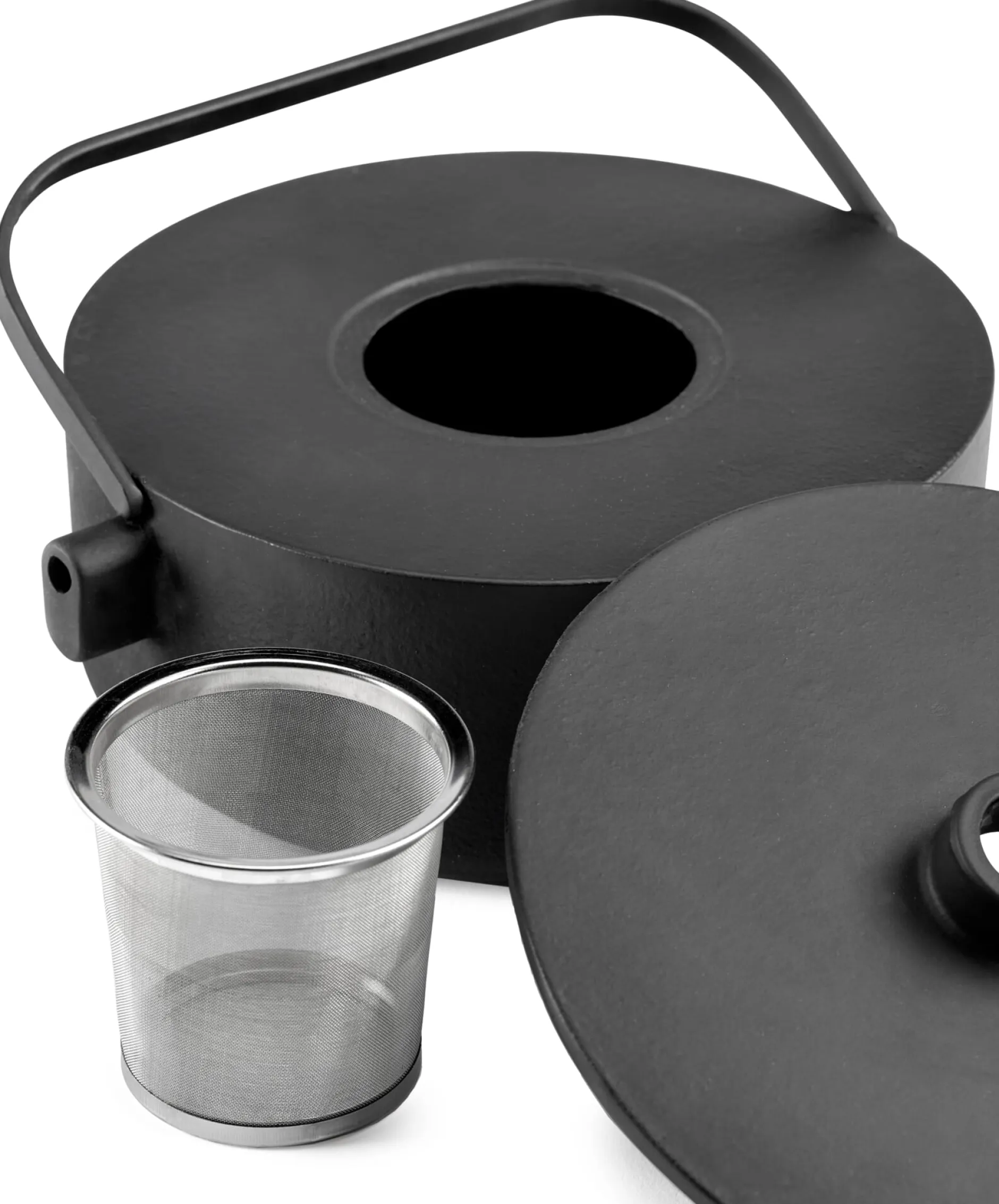 Bildschöne Teekanne – aus Gusseisen, dem perfekten und bewährten Material für diesen Inhalt und in ungewöhnlicher Formgebung. Die maximal 1,2 Liter fassende Kanne ist gut zu handhaben, gießt sicher aus und besitzt einen Siebeinsatz aus Edelstahl. Sie ist außerdem induktionsgeeignet.
