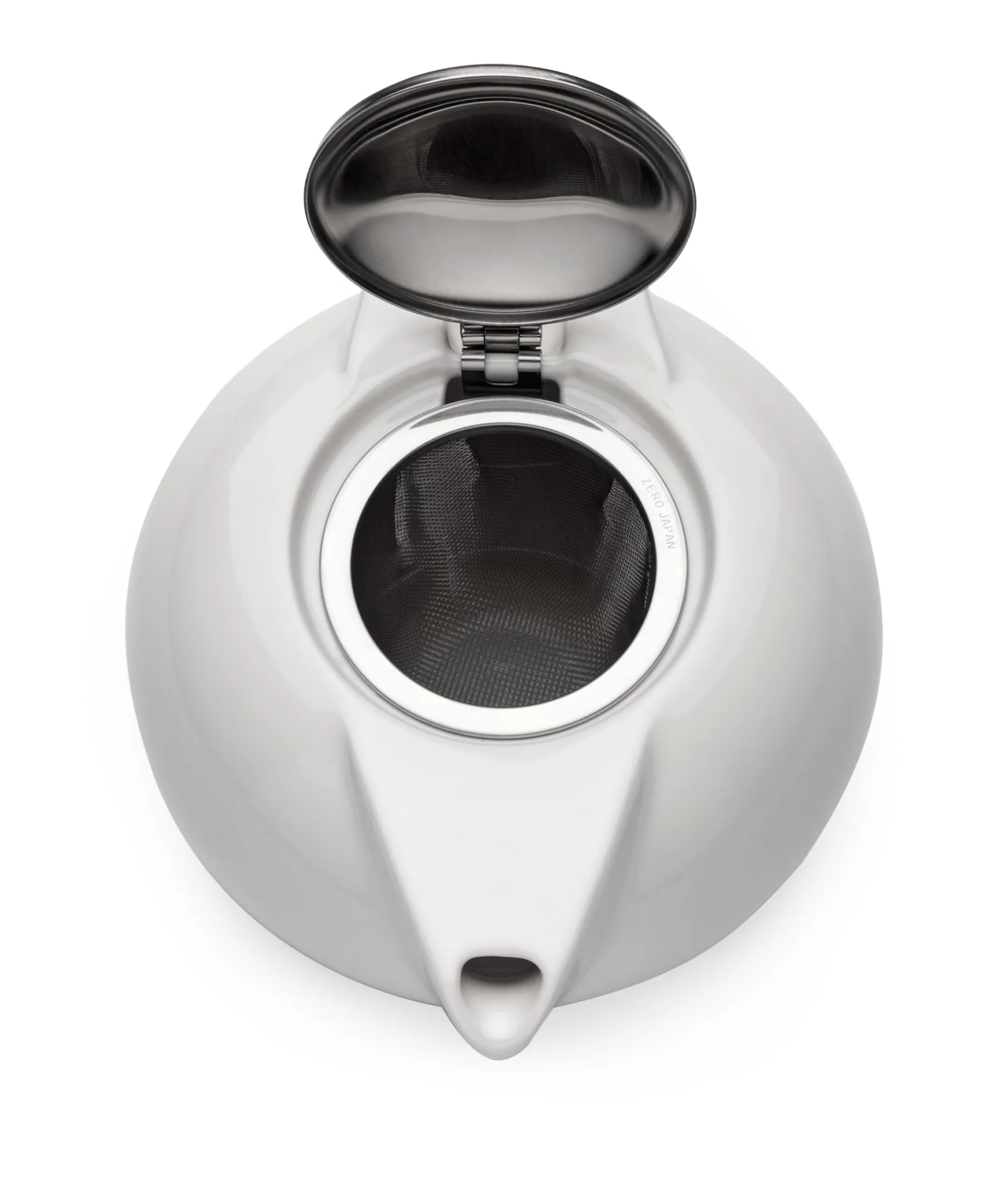 Aus Japan: Gut zu handhabende, klassisch geformte Teekanne in zwei Größen und zwei Farben. Der Deckeleinsatz, sowie das Sieb aus Edelstahl für losen Tee lassen sich zu Reinigungszwecken leicht entfernen. Die Größe des Siebeinsatzes sorgt für eine sehr gute Aromaentfaltung des Tees. Der Ausgießer ist so konzipiert, dass er nicht tropft.