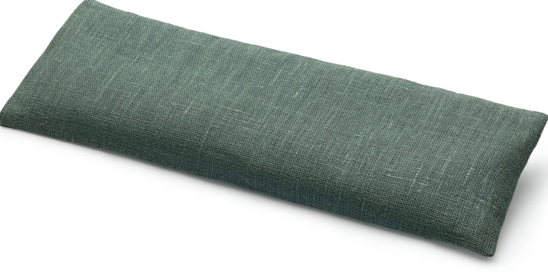 Bezug 100% Leinen (Estland). Inlett 100% Baumwolle (Pakistan). Füllung Bio-Weizen (Schweden) und Bio-Lavendel (Frankreich). Der Bezug ist bis 40 °C waschbar. Hergestellt in Schweden. L 30 × B 12 cm. Gewicht ca. 410 g.