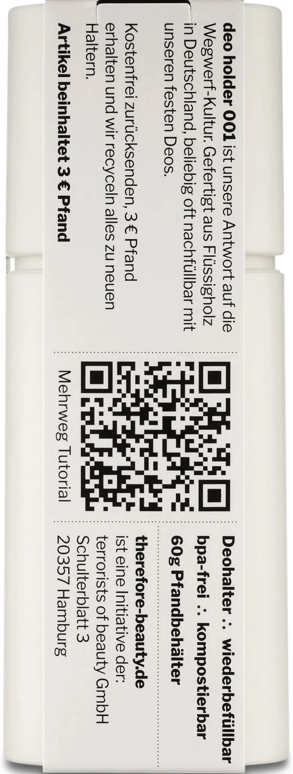 Maße: Behälter: B 7,5 × T 7,5 × H 11,5 cm, Deo-Riegel: B 3 × T 3 × H 8 cm