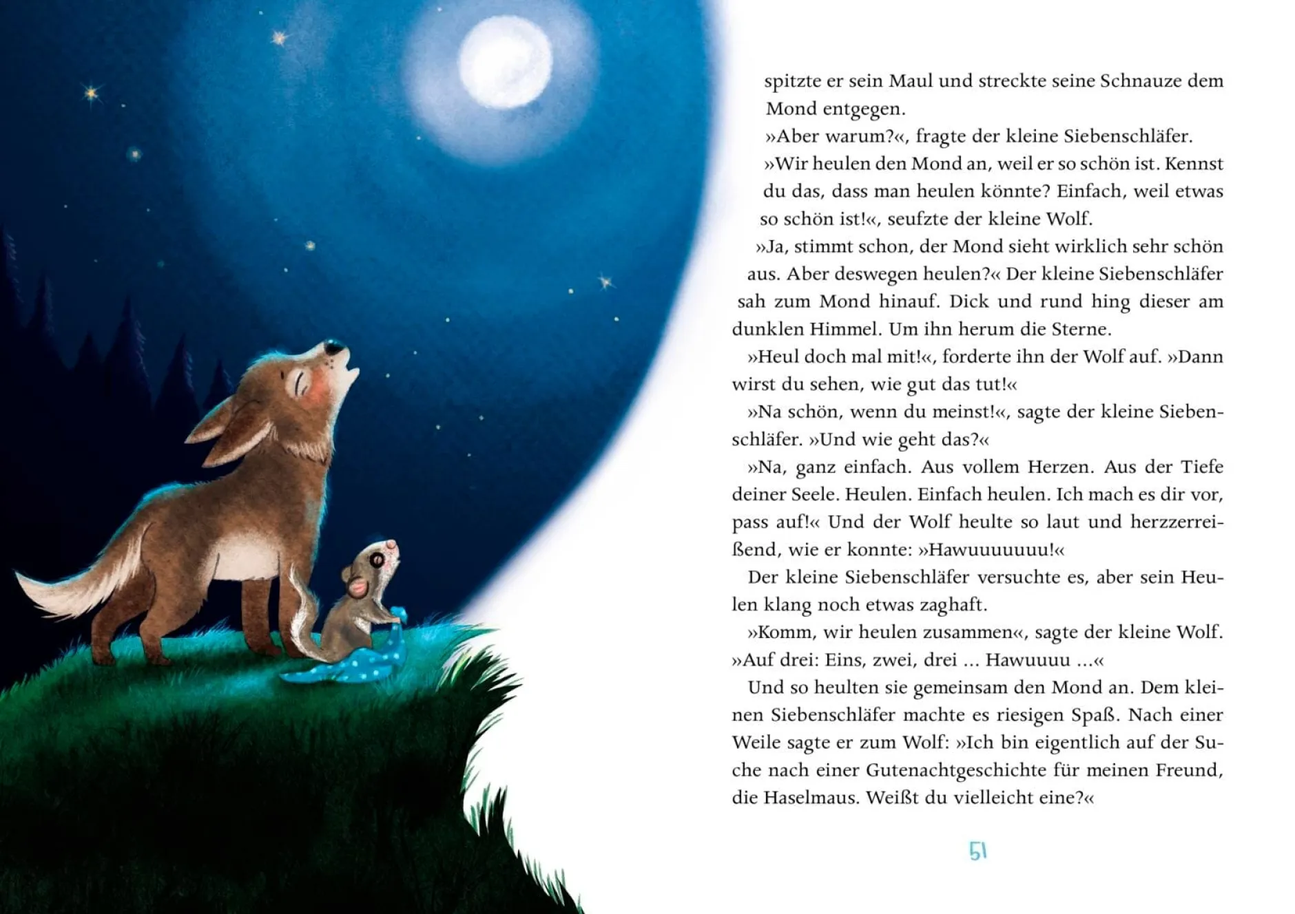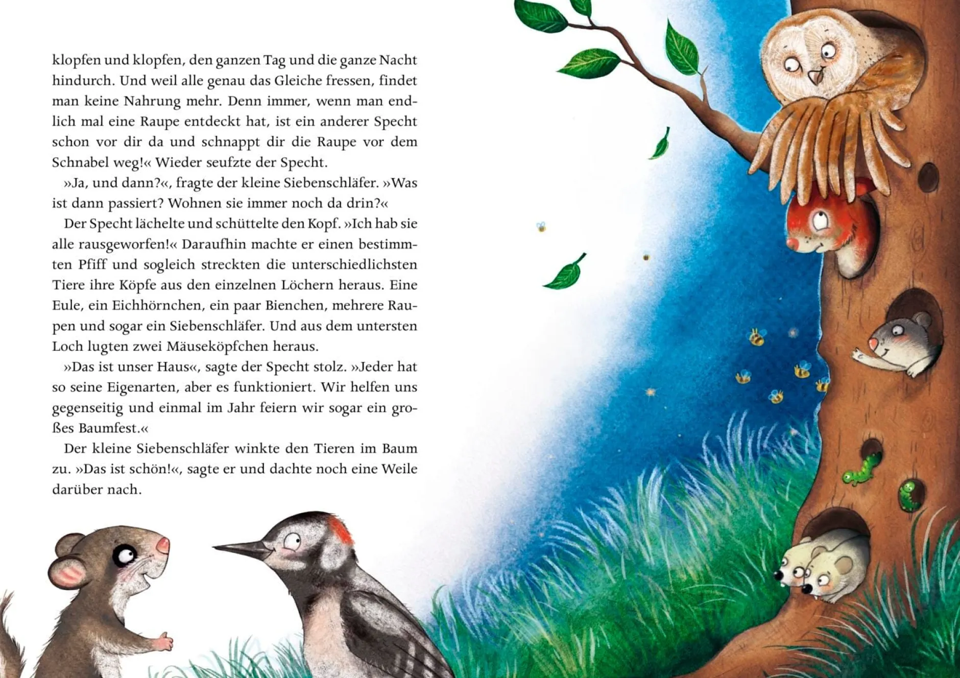 Wenn die Haselmaus beim kleinen Siebenschläfer übernachtet, soll alles perfekt sein! Der kleine Siebenschläfer strengt sich mächtig an. Doch als die Haselmaus eine Gutenachtgeschichte hören will, weiß der kleine Siebenschläfer nicht weiter. Wo soll er die nur hernehmen? Vielleicht weiß ja der Specht eine Geschichte. Doch der Specht ist zu sehr damit beschäftigt, Häuser in den Baum zu hacken. Auch die Nachtigall und der liebeskranke Frosch wissen keine Geschichte. Genau wie die anderen Tiere im Wald. Traurig kehrt der kleine Siebenschläfer zurück in seine Höhle. Er denkt an seine Freunde und da wird ihm plötzlich klar: Er hat ja heute Nacht eine ganze Schnuffeldecke voller Geschichten gesammelt!