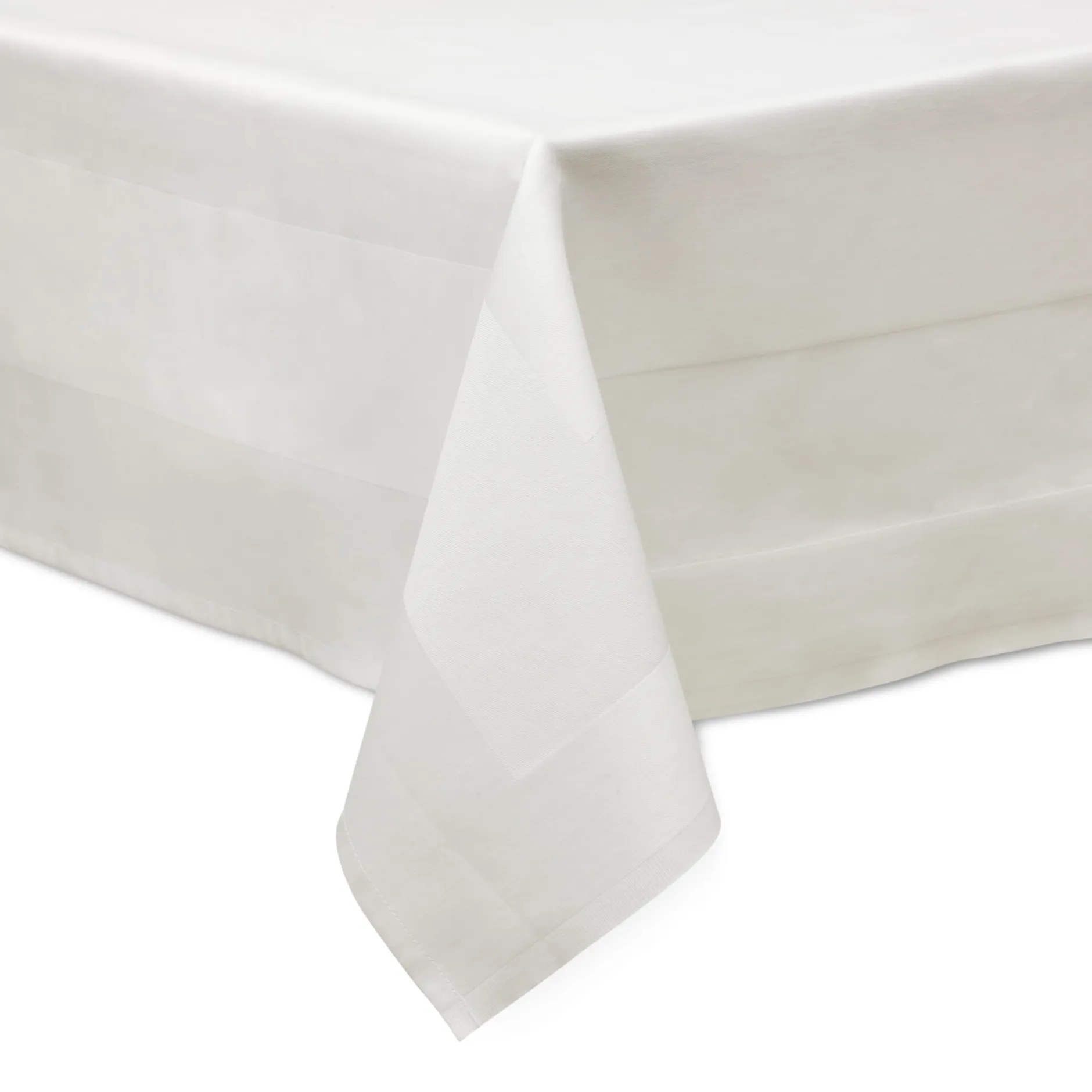 Alltagstischdecke in Gastronomiequalität – reinweiß, griffig, unverwüstlich und natürlich kochfest. Baumwolle merzerisiert, mit Atlaskante verarbeitet – jedem Papiertuch himmelhoch überlegen.