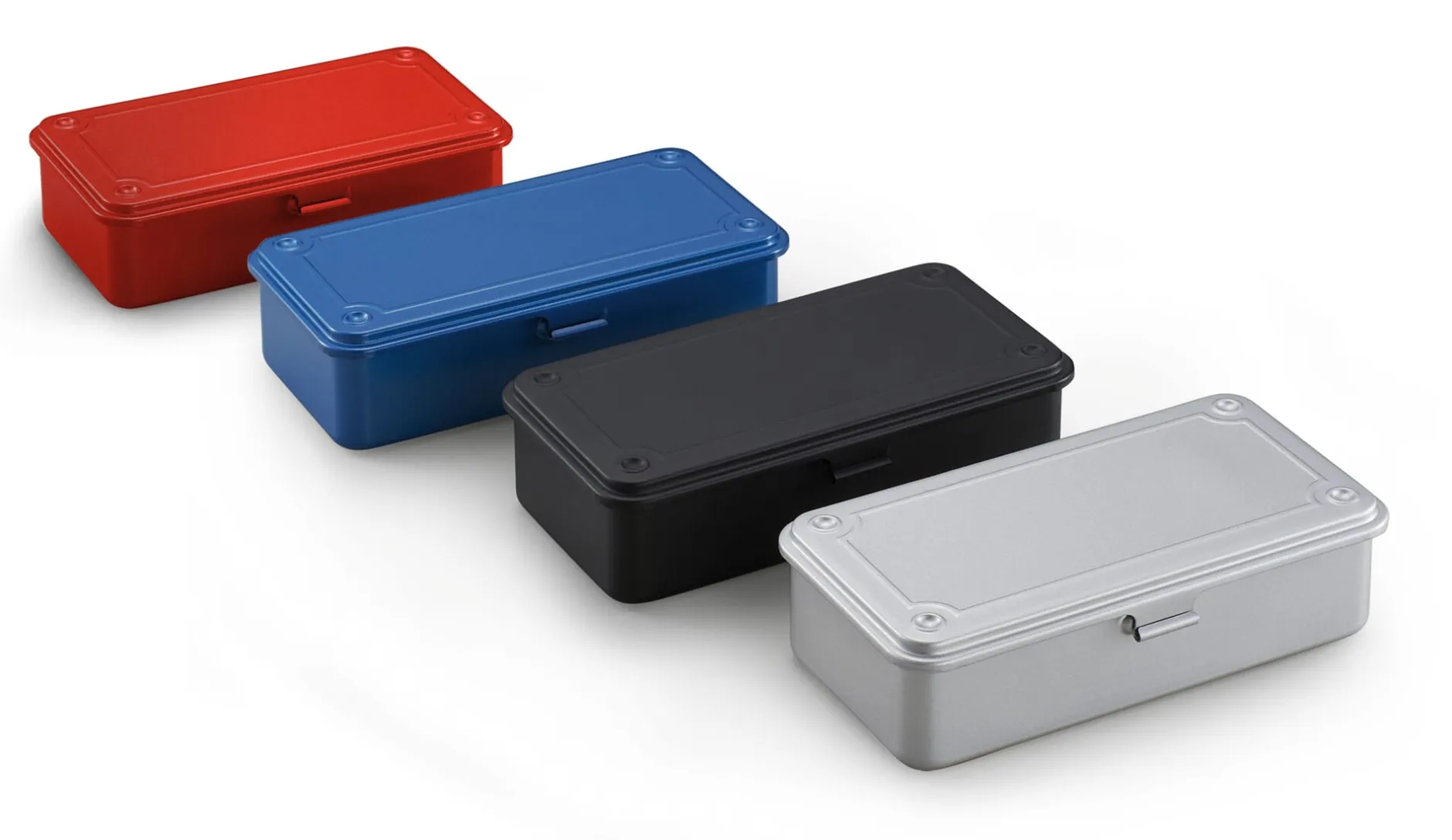 Den Kontakt zur Firma TOYO STEEL fanden wir über Umwege, als wir auf einem Flohmarkt vor Jahren eine Werkzeugkiste von ausgezeichneter Qualität fanden. Der Rechercheweg führte uns nach Japan zu TOYO STEEL. Seit 1969 produziert der Werkstatt-Ausstatter aus Osaka Behälter aus Stahlblech. Wie bei vielen japanischen Produkten prägt ein hoher Anspruch an Perfektion in Ausführung, Material und Proportion die Erzeugnisse aus diesem Haus. Es ist interessant zu sehen, wie sich japanische manufakturelle Produktkultur auch in solch industriell produzierten Erzeugnissen wiederfindet. Wie beispielsweise bei der Universalkiste TOYO: fein abgerundete Ecken und Kanten, Ober- und Unterteil aus je einem Stück Stahlblech tiefgezogen, das verbindende Scharnier aus dem Deckel herausgearbeitet. Somit ist die Universalkiste eine schweißnahtlose, leichte und dennoch robuste Utensilienbox von beeindruckender Verarbeitungsqualität. Eigenschaften, die wir bei all den Produkten von TOYO STEEL vorfinden.