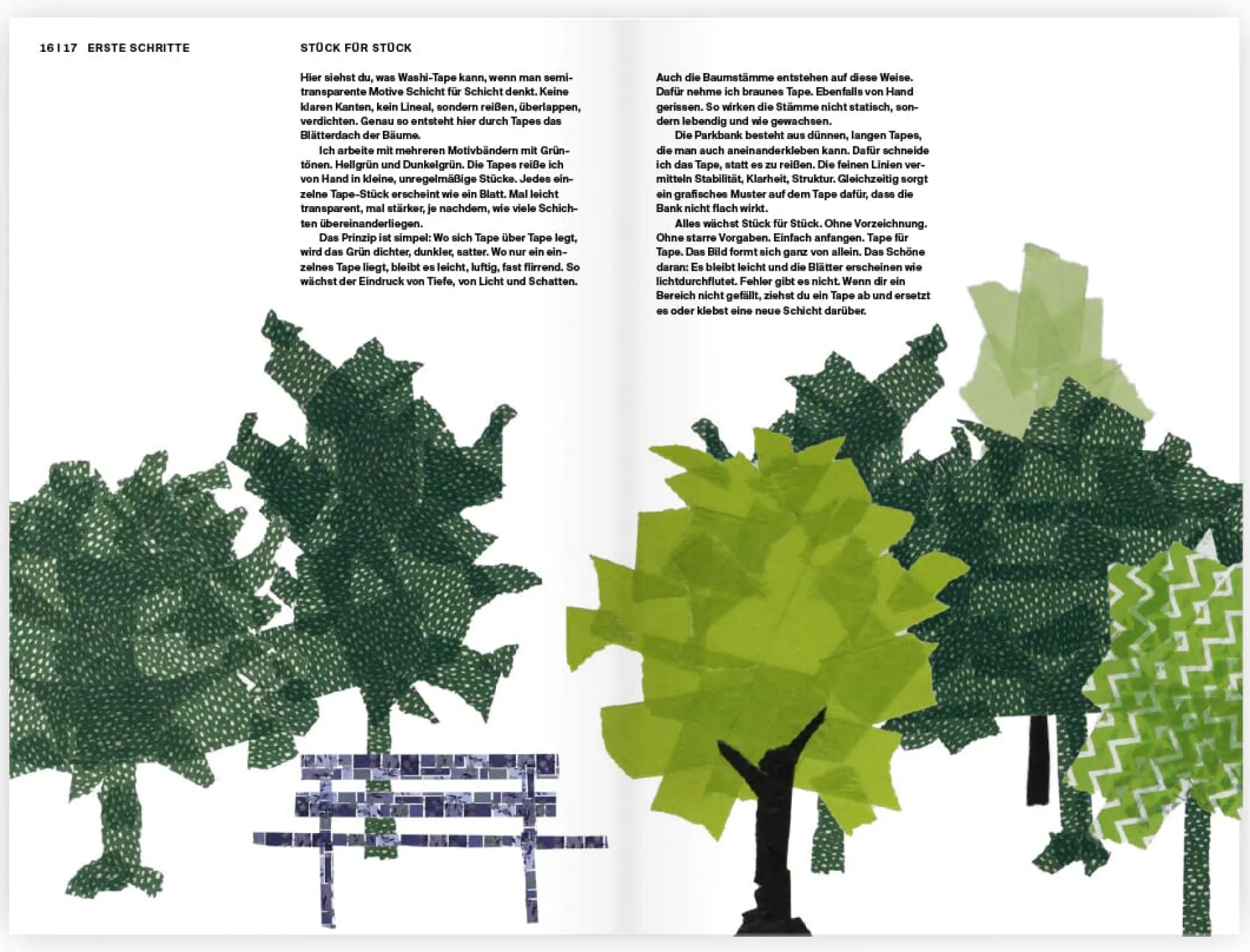 Im Handumdrehen werden Tape und Cutter zu Werkzeugen, mit denen Sie Ihrer Kreativität Ausdruck verleihen und unkompliziert Illustrationen auf Papier, an der Wand oder auf der Fensterscheibe erstellen können. Washi Tape wird aus Pflanzenfasern hergestellt, ist flexibel und einfach ablösbar. Es ist einfarbig oder gemustert, geometrisch oder floral erhältlich und preiswert. Die kreative Arbeit mit den bunten Bändern garantiert schnell kleine Erfolgserlebnisse und bildet den idealen analogen Gegenpol zu einem von digitalen Tools dominerten Alltag.