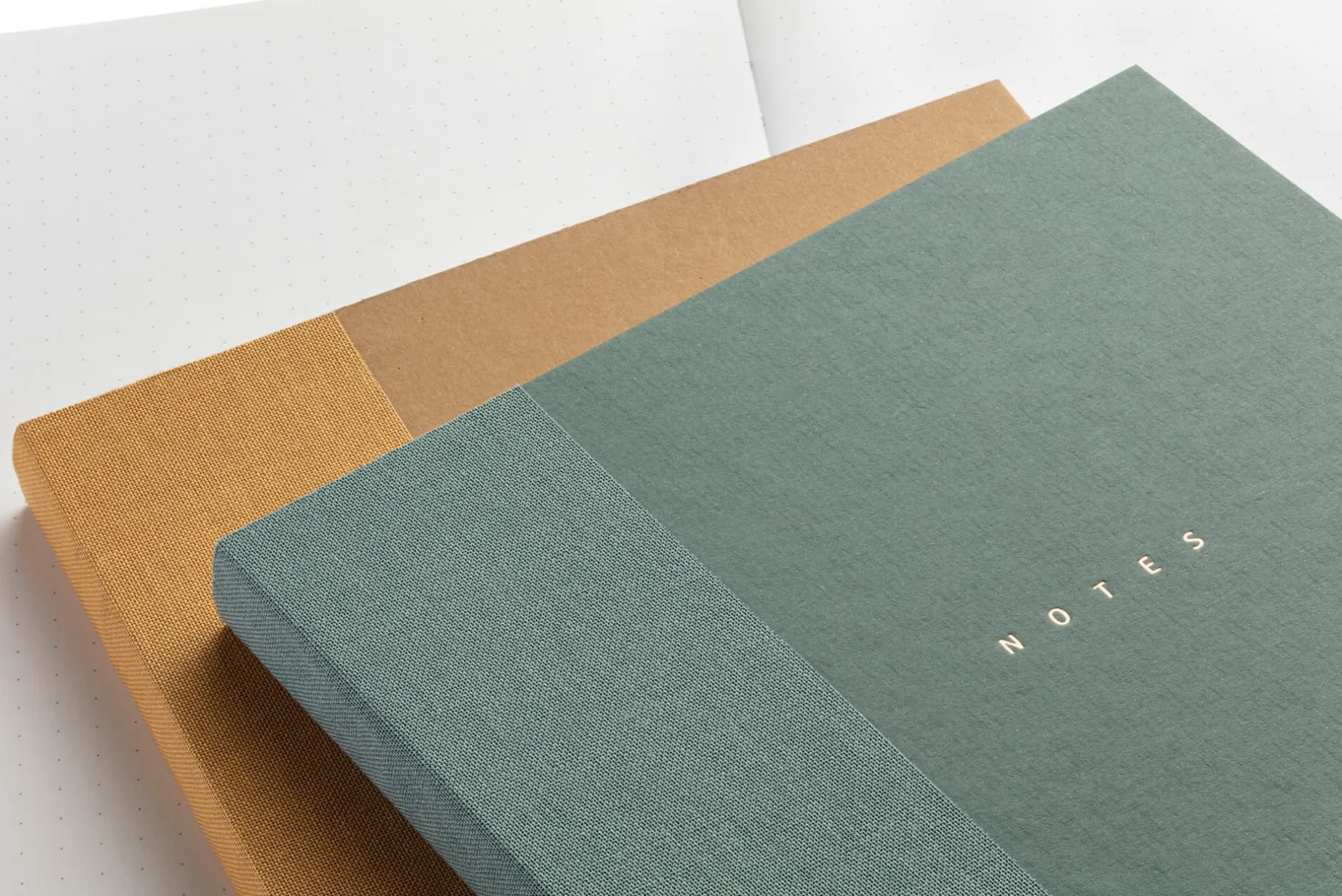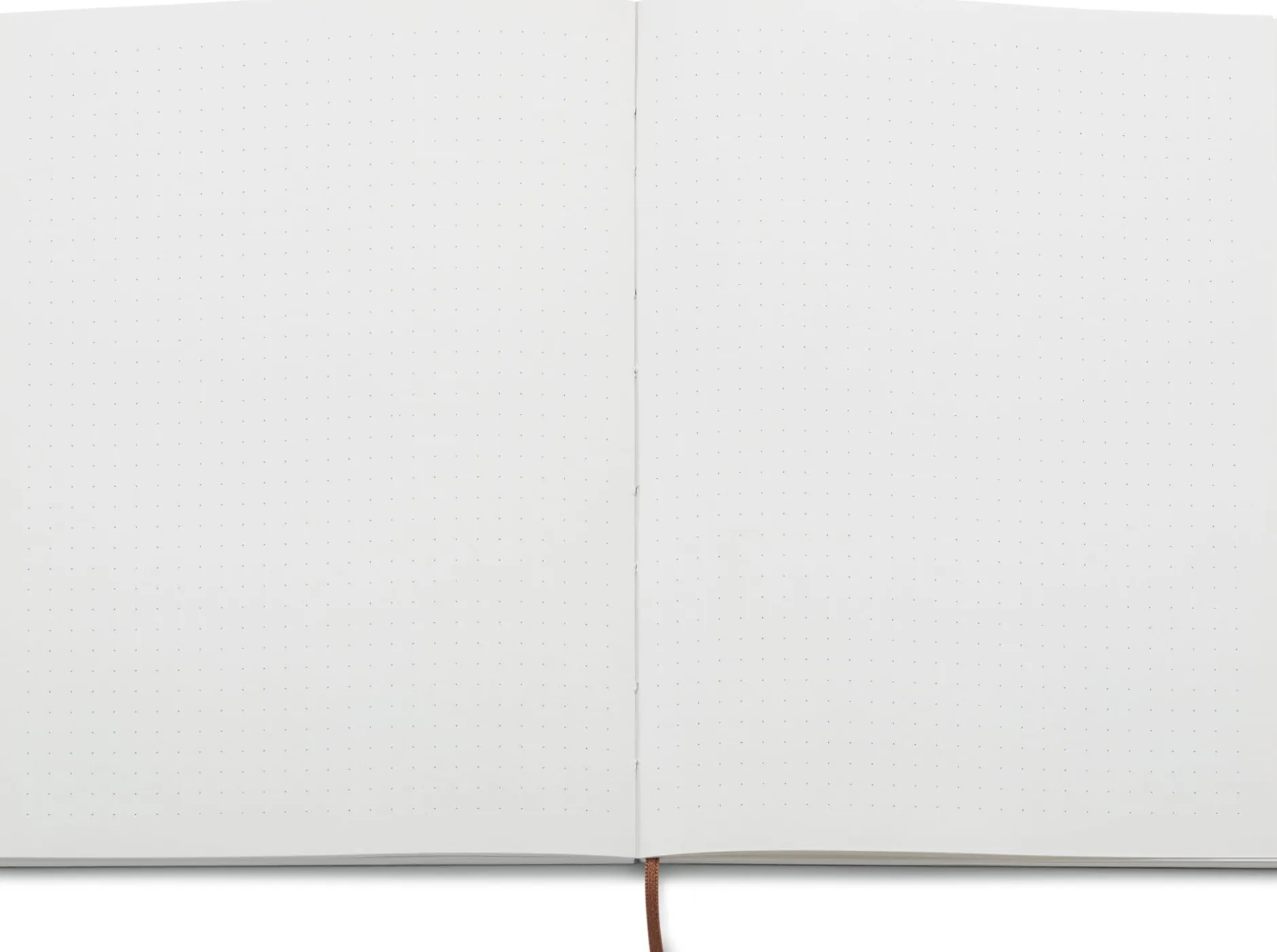 Ein unprätentiöses, dennoch ästhetisch ansprechendes und vor allem buchbinderisch solide gefertigtes Notizbuch mit haptisch angenehmem (und mittlerweile seltenem) Halbleineneinband. Es besteht aus mehreren fadengebundenen Heften, sodass sich die 160 Seiten stets gut aufschlagen lassen. Das zartweiße Papier (100 g/qm) mit Punktraster ist tintenfest, kann also auch mit einem Tintenroller oder Füllfederhalter beschrieben werden.