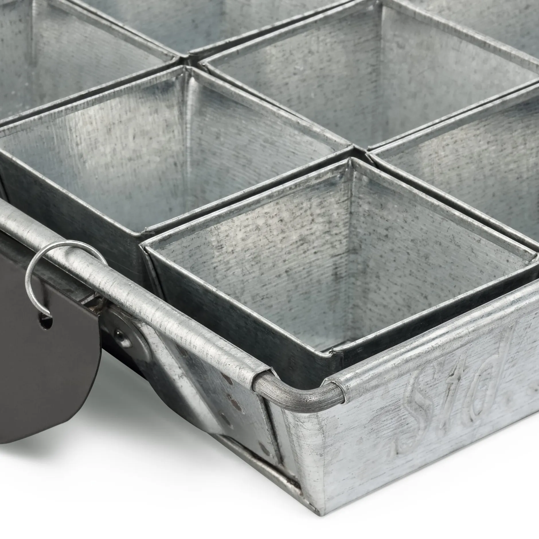 Stahlblech feuerverzinkt. Einzeltöpfe Höhe 3,5 cm, Kantenlänge 5,5 cm. In zwei Varianten erhältlich.