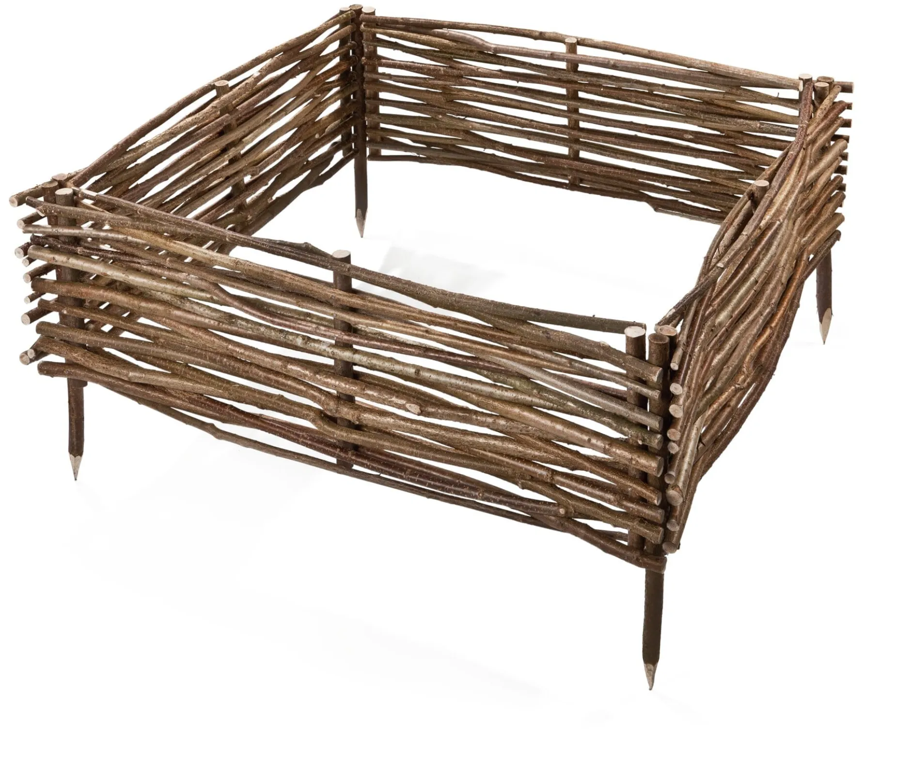 Die Tradition, Beete – meist kleinere, quadratische – mit Umzäunungen aus geflochtenen Haselruten zu versehen, ist Jahrhunderte alt. In mittelalterlichen Bauern- und Klostergärten setzte man sie beispielsweise dazu ein, Apotheken- von Küchenkräutern zu trennen, um ein Vermischen der Bestände zu verhindern. Zudem sind in den etwas erhöhten und übersichtlichen Beetflächen Unkraut, Schädlinge und Krankheiten besser in Schach zu halten. In heutiger Zeit können die Umzäunungen noch einen ganz anderen Zweck erfüllen: Mit ihrer Hilfe lassen sich in jedem städtischen Hinterhof, vollkommen unabhängig von der Güte des Bodens, kleine Kräutergärten anlegen. Dazu wird der Rahmen einfach auf den Untergrund – auch auf Beton- oder Schotterflächen beispielsweise – gestellt (zu diesem Zweck müssen die Pfosten gekürzt werden), mit der beiliegenden Folie ausgekleidet und mit guter Erde befüllt. Die Maße der Flechtelemente können leicht variieren.