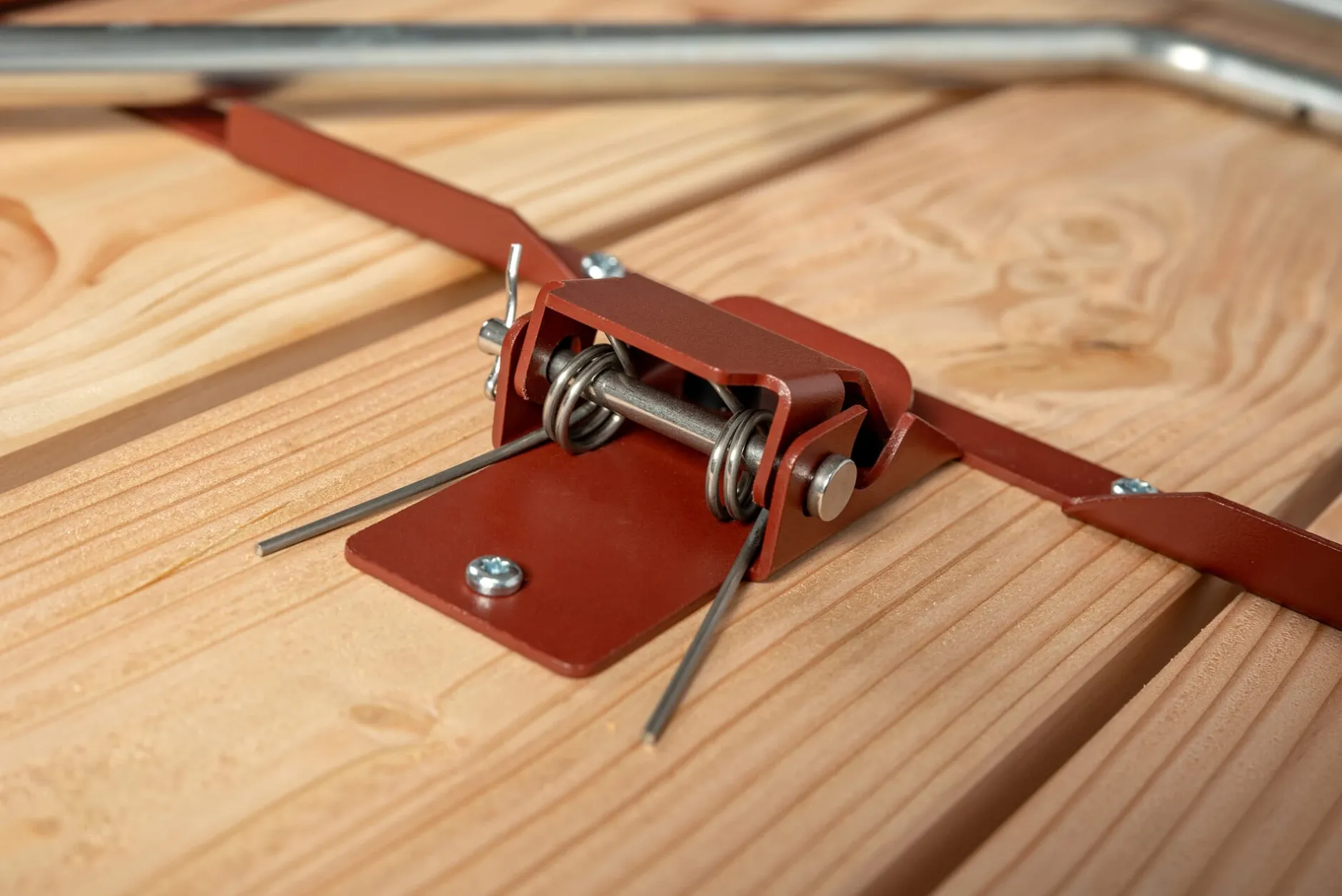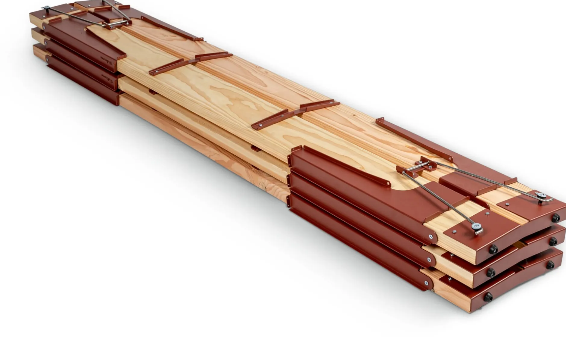 Material: Stahl, pulverbeschichtet (RAL 3009 Oxidrot); Lärche (Herkunft: Polen)