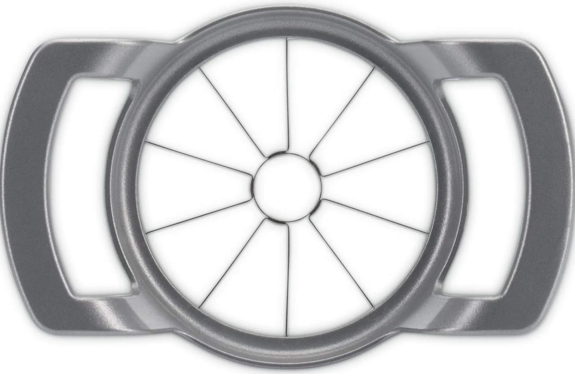 Entkernen und Schneiden. Der Apfelteiler zerteilt Äpfel (oder Birnen) in zehn gleich große Spalten und trennt dabei noch das Kerngehäuse heraus.