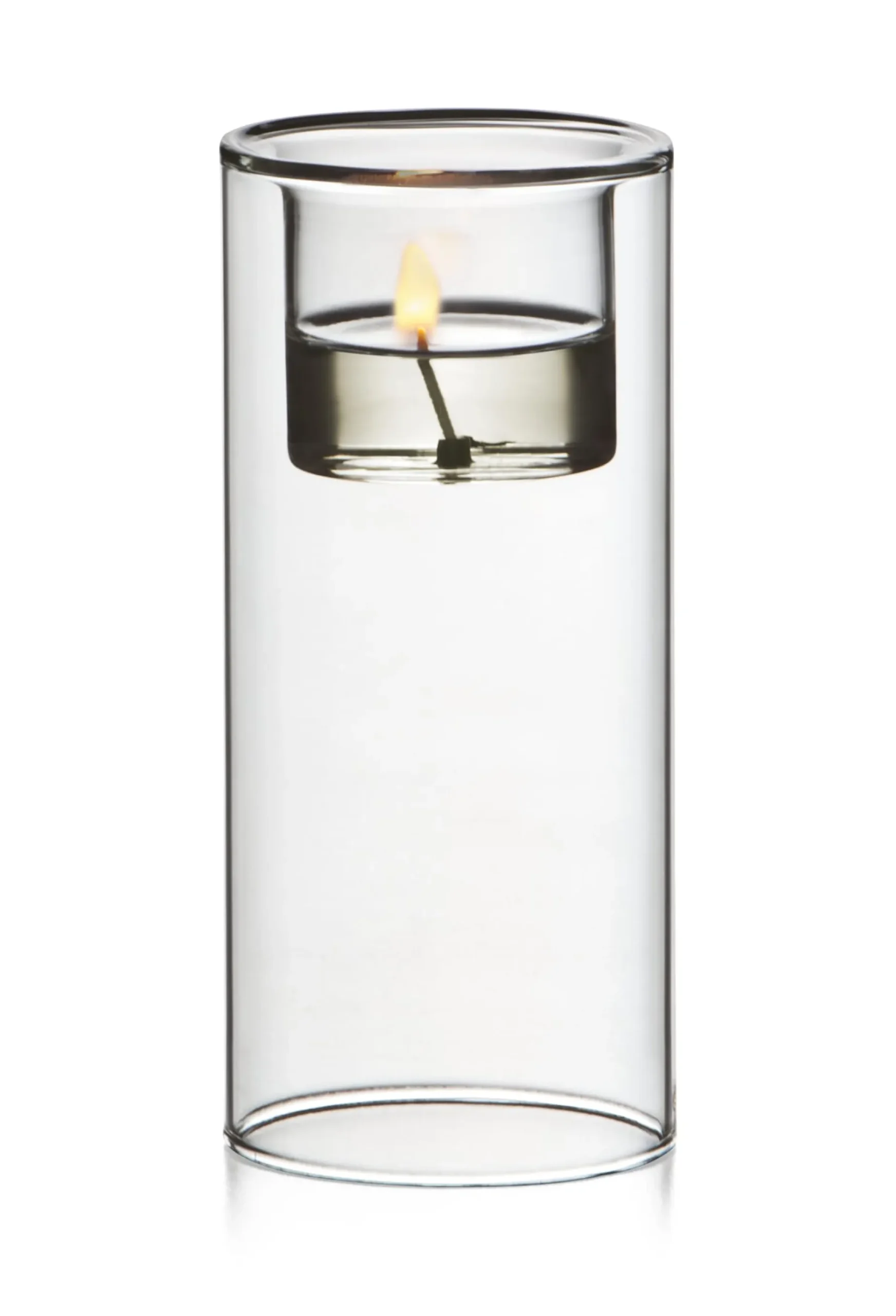 Das Material: doppelwandiges, hitzebeständiges und bruchfestes Borosilikatglas. Die Windlichter sind geeignet für die Standardgröße aller Teelichter. Ohne die verzichtbaren Aluminiumhülsen schmilzt das Wachs und wird transparent, was den Lichteffekt eindrucksvoll verstärkt.