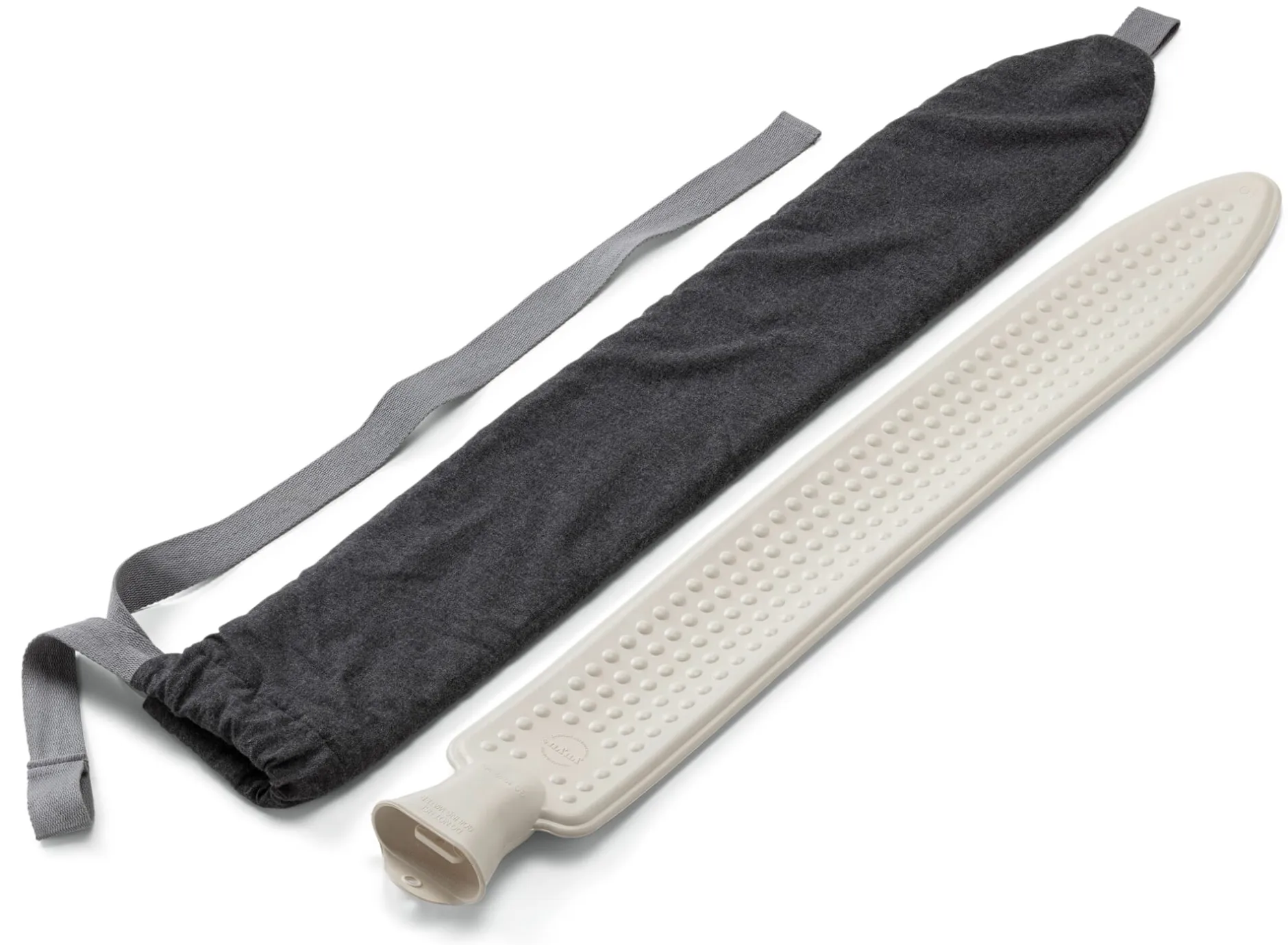 Länger auf Temperatur: Diese ausgefallene, temperierende Flasche liefert wahlweise Wärme oder Kälte genau dorthin, wo sie gebraucht wird – ob zum Aufwärmen an kälteren oder für den angenehmen Kühleffekt an heißen Tagen sowie zur Entspannung. Denn dank ihrer schlanken Form und ihrer Länge von 81 cm schmiegt sie sich den jeweiligen Konturen an und lässt sich überall am Körper nutzen. Damit sie dort auch bleibt, kann sie mit den integrierten Bändern gebunden werden. Für freie Hände zum Arbeiten, Telefonieren, Lesen, Spielen und Kochen. Für Wärme und Kälte zum Mitnehmen – an die Bahnhaltestelle, auf tägliche Wege mit dem Fahrrad oder auf den Nachmittagsspaziergang. Die Flasche hält bis zu 6 Stunden warm oder kühl.