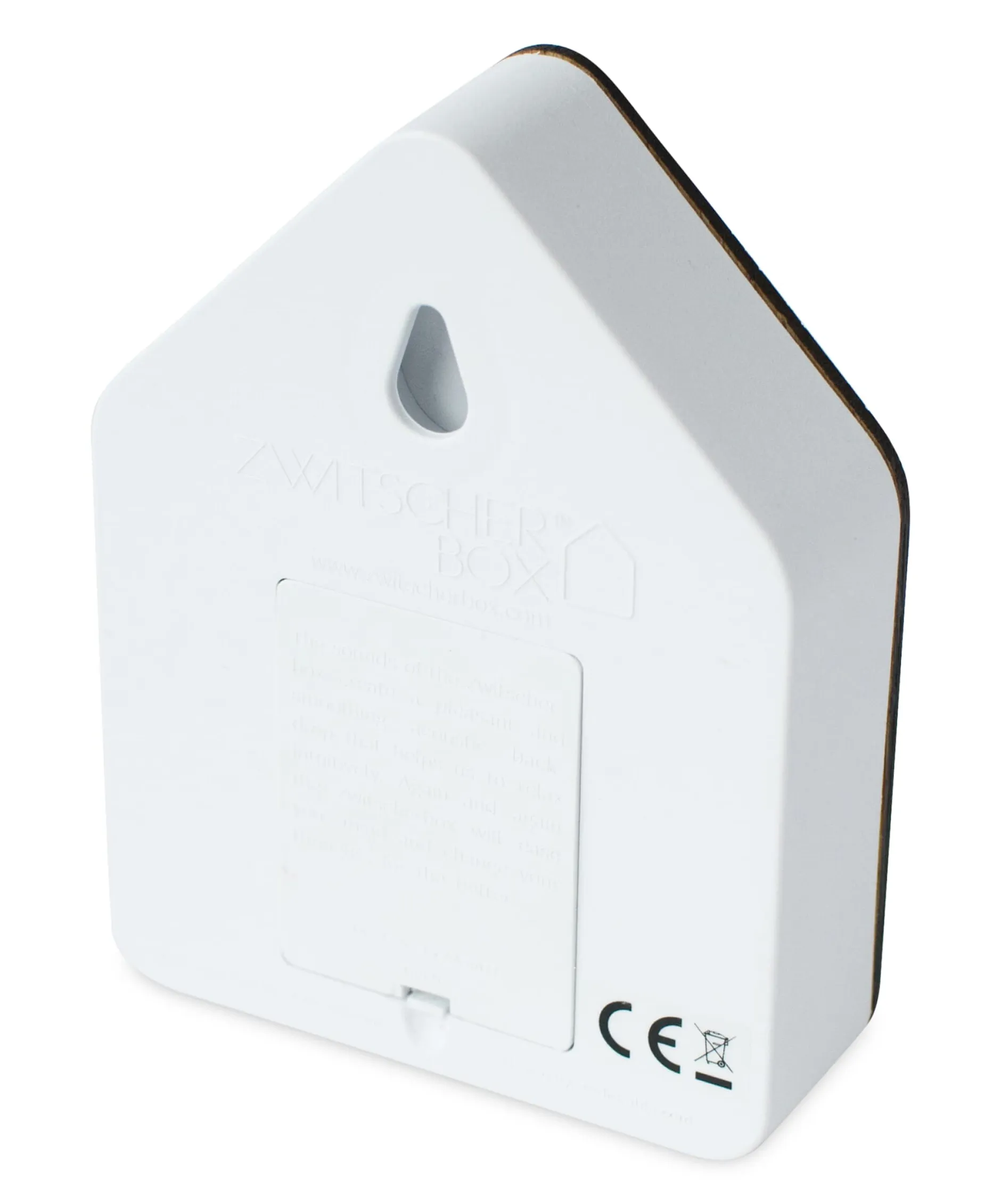 ZWITSCHERBOX findet ihren Platz im Regal im Arbeitsraum, in Fluren und sonstigen Nebenräumen. Sie kann sowohl gestellt, als auch aufgehängt werden. Der Ton selbst wird durch einen Bewegungsmelder aktiviert und blendet bei ausbleibendem Bewegungsimpuls nach etwa zwei Minuten aus. Mit dem kleinen Rädchen an der Seite kann die Lautstärke eingestellt oder die ZWITSCHERBOX auch ausgeschaltet werden.