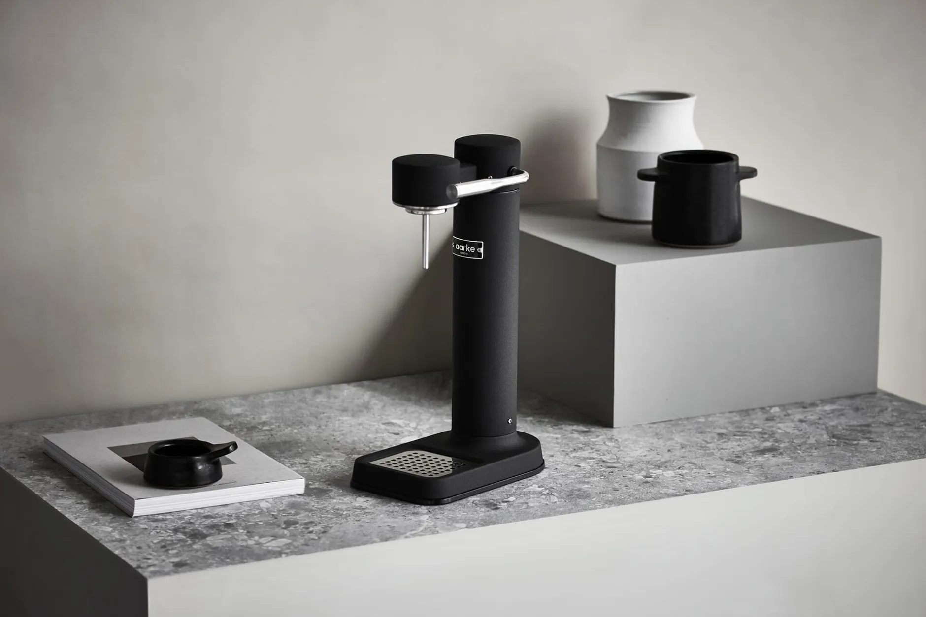 Seither machen unter dem Namen Aarke keine halben Sachen: Mit höchstem Anspruch an jedes noch so kleine Detail und Bauteil entwickelt und produziert Aarke Küchengeräte – Wassersprudler, -filter, -koche, Kaffeebereiter und auch Gläser – die überzeugend funktionieren und noch dazu gut aussehen. Dabei täuscht die klar ablesbare und pure Gestaltung über das komplexe Innenleben hinweg: Mechaniken, Leitungen und Federn – Hebelwirkungen, Druckverteilung und jedes kleinste Detail nehmen Carl Ljungh und Jonas Groth gemeinsam mit Ingenieuren und Technikern unter die Lupe, nehmen auseinander, denken neu und optimieren so lange bis alles – von der Funktion bis zum Design – ganz genau so ist, wie es sein soll. Damit das Wasser richtig gut wird.
