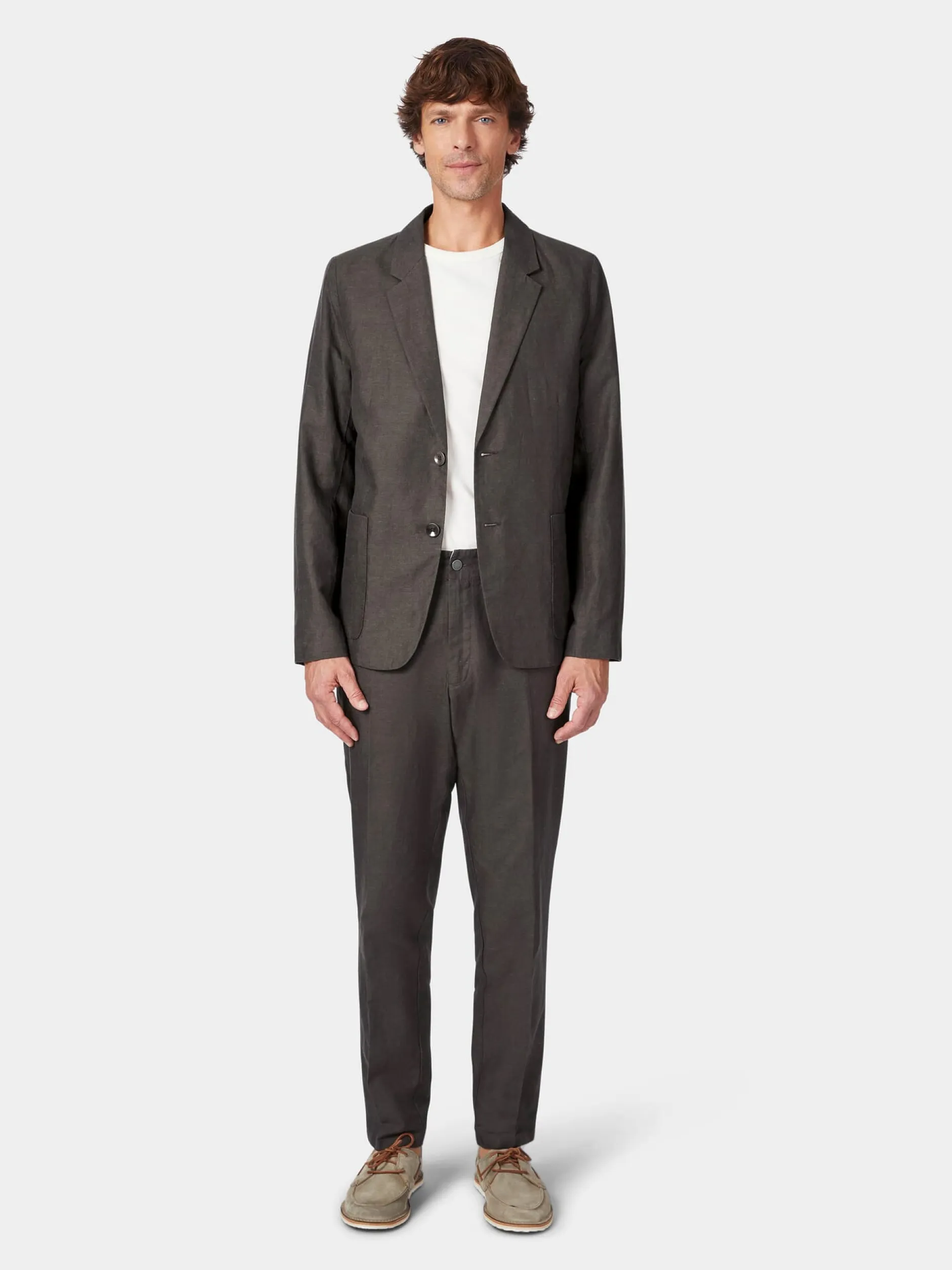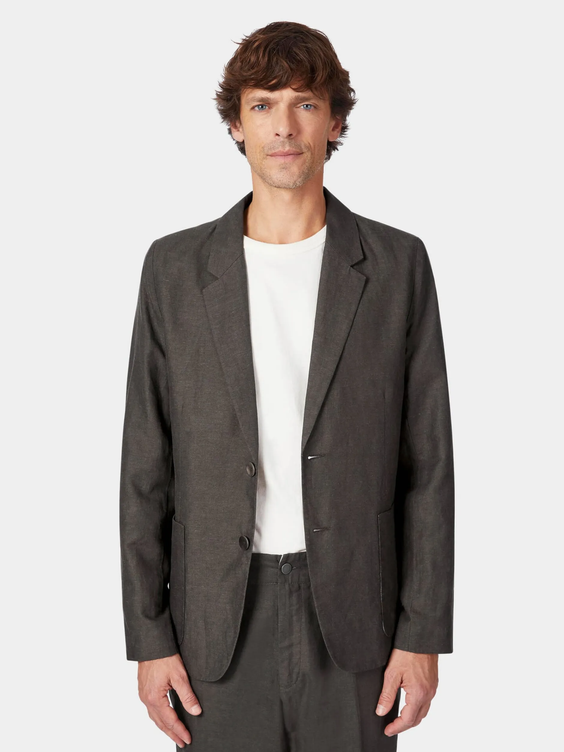 Dieses gerade geschnittene Sakko ist mit Längsteilungsnähten vorn und einer Längsnaht im Rücken gearbeitet. Das luftige, leicht körnige Gewebe besteht aus hautsympathischer Bio-Baumwolle und kühlendem, strapazierbarem Leinen. Das Sakko ist ungefüttert, bis auf die Ärmel, in denen ein glattes TENCEL™-Futter eingesetzt ist, was das An- und Ausziehen erleichtert und für guten Sitz sorgt. Zwei aufgesetzte Taschen und zwei Innentaschen nehmen Kleinteile des täglichen Bedarfs auf.
