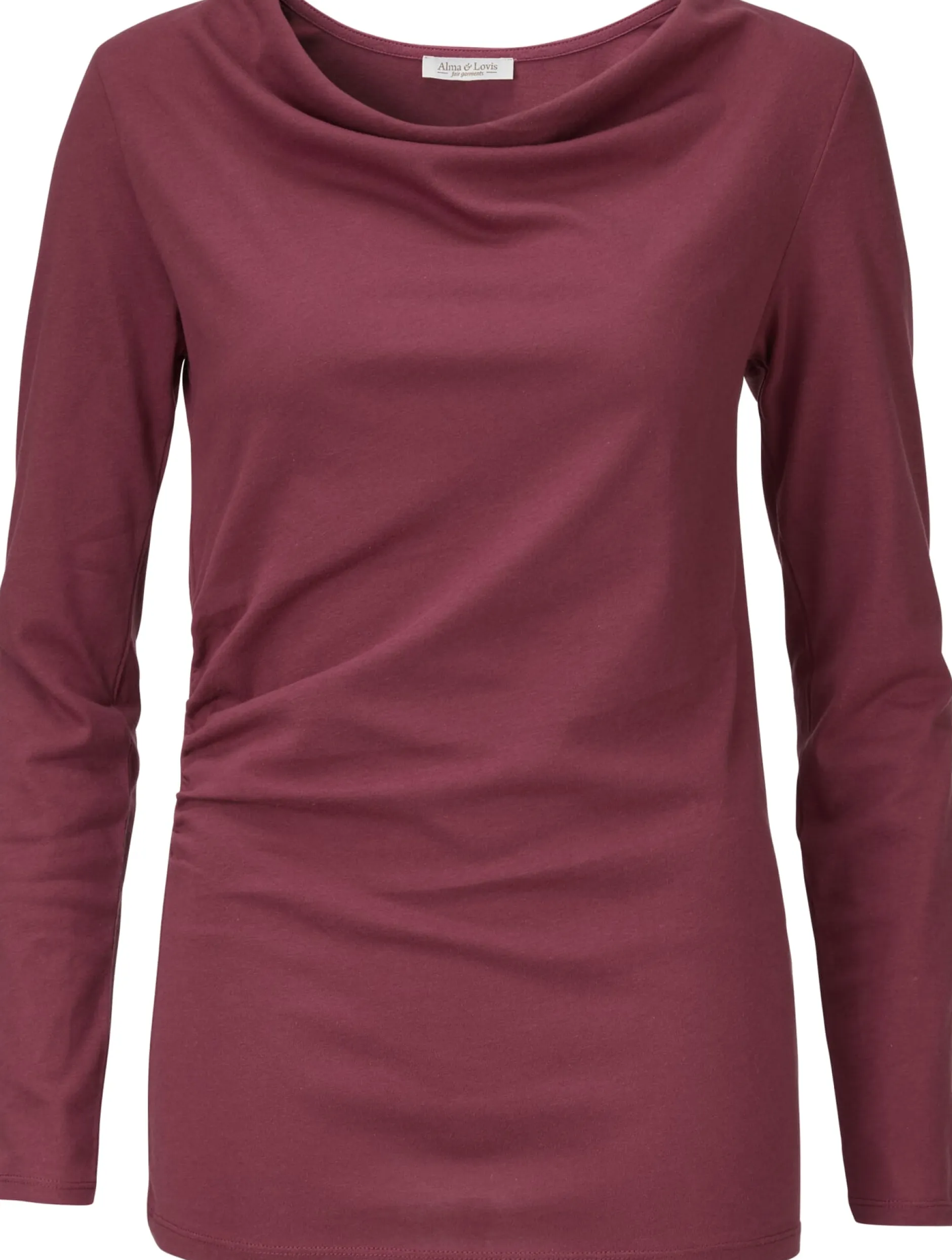 Shirt aus feinem kbA-Baumwollgewebe mit fließend fallendem Wasserfall-Ausschnitt. Der Rumpf ist einseitig gerafft.