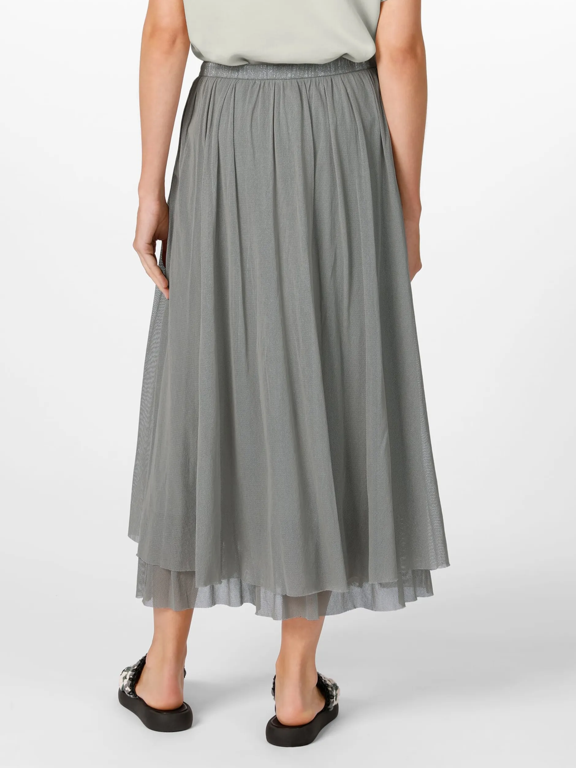 Sie sind zurück – die Tüllröcke! Dieser hier von Alma & Lovis ist allerdings eine Seltenheit, denn er besteht aus reiner kbA-Baumwolle und nicht aus Polyester wie die meisten seiner „Anverwandten“. Das macht ihn besonders weich und dehnbar. Ein Glitzer-Gummibund sorgt für noch mehr Bewegungsfreiheit. Der Rock hat zwei Lagen – die untere besteht aus glattem Bio-Baumwolljersey mit Tüllblende, die obere ist komplett aus Tüll gearbeitet und fällt im Stufenlook locker über die untere. Kombiniert mit Bluse oder T-Shirt, Blazer oder Lederjacke, Sandalen oder Sneakern – der Tüllrock lässt Spielraum für vielfältige Outfits, von elegant bis lässig.