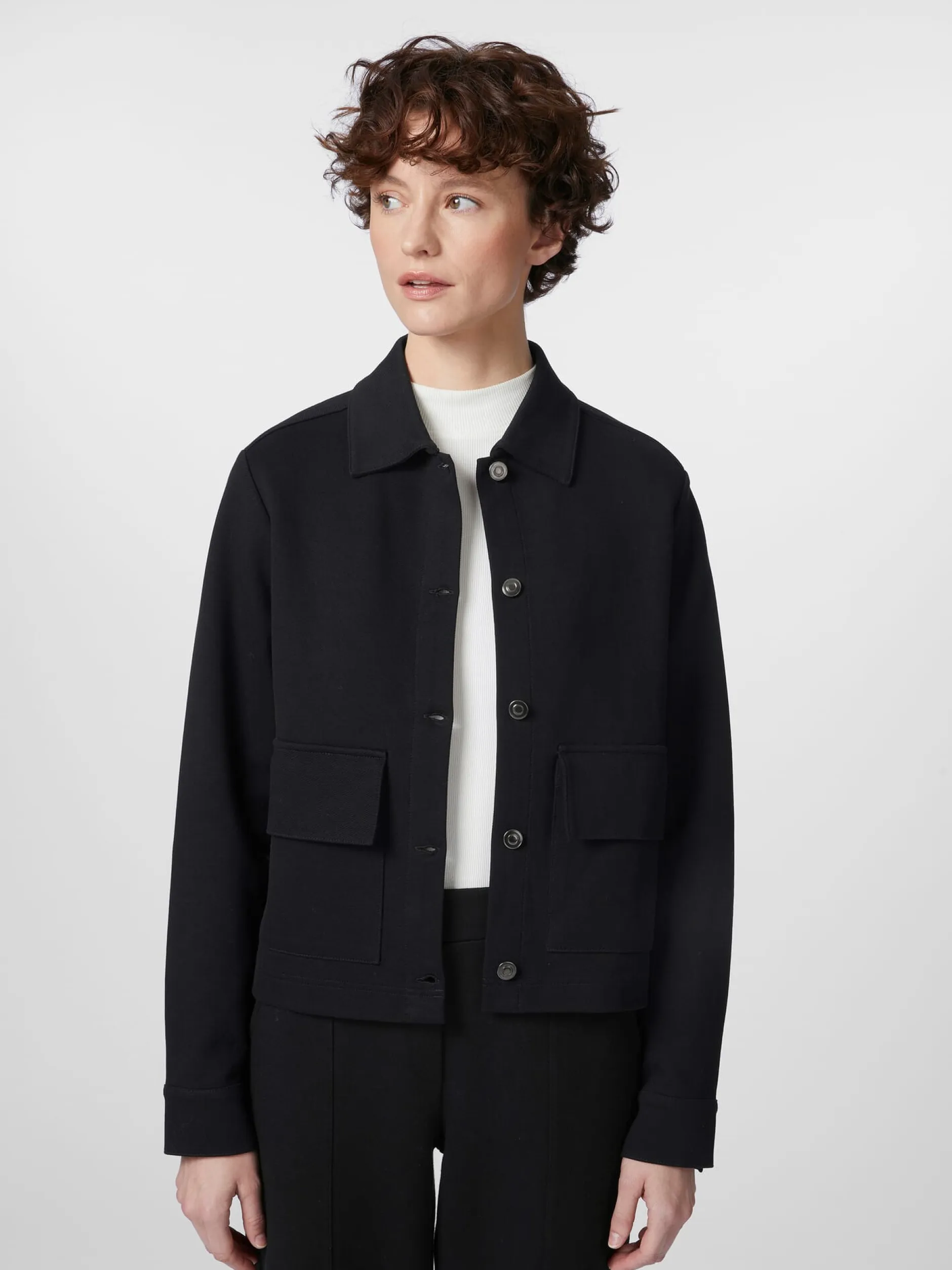 Diese sportlich geschnittene Jacke ist aus Heavy Jersey gefertigt – einem besonders schweren Interlock-Jersey, der fester, griffiger und feinmaschiger und damit strapazierbarer als normaler Jersey ist. Zudem weist er eine hohe Formbeständigkeit auf. Der Stoff wird aus unterschiedlichen Materialien gewirkt. Alma & Lovis verwendet hier hautsympathische, kontrolliert biologisch angebaute Baumwolle und einen geringen Anteil Elastan zugunsten von Elastizität und Tragekomfort. Ausgestattet ist die ungefütterte Jacke mit Hemdkragen und zwei aufgesetzten Pattentaschen. Zwei gelegte Falten unter der Schulterpasse sorgen für einen guten Sitz und noch mehr Bewegungsfreiheit.